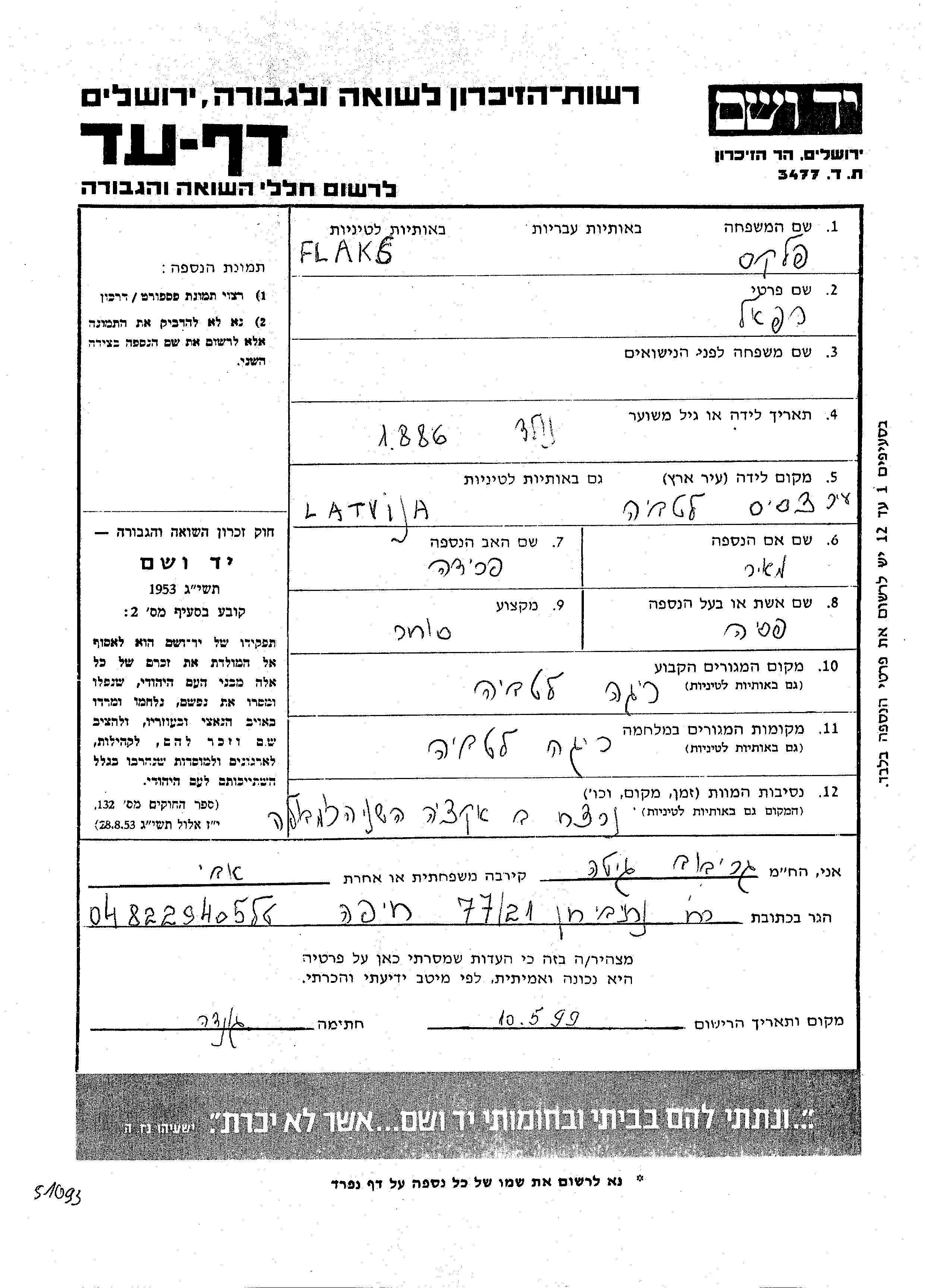 יד ושם - המפעל להנצחת השמות בדפי עד