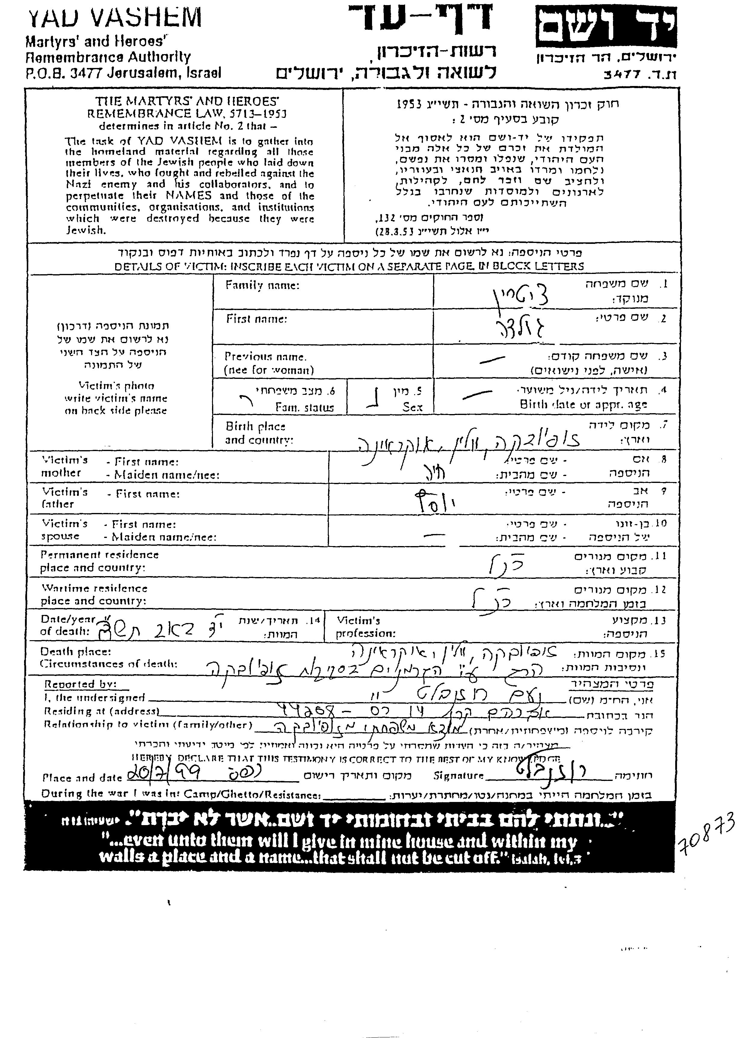 יד ושם - המפעל להנצחת השמות בדפי עד