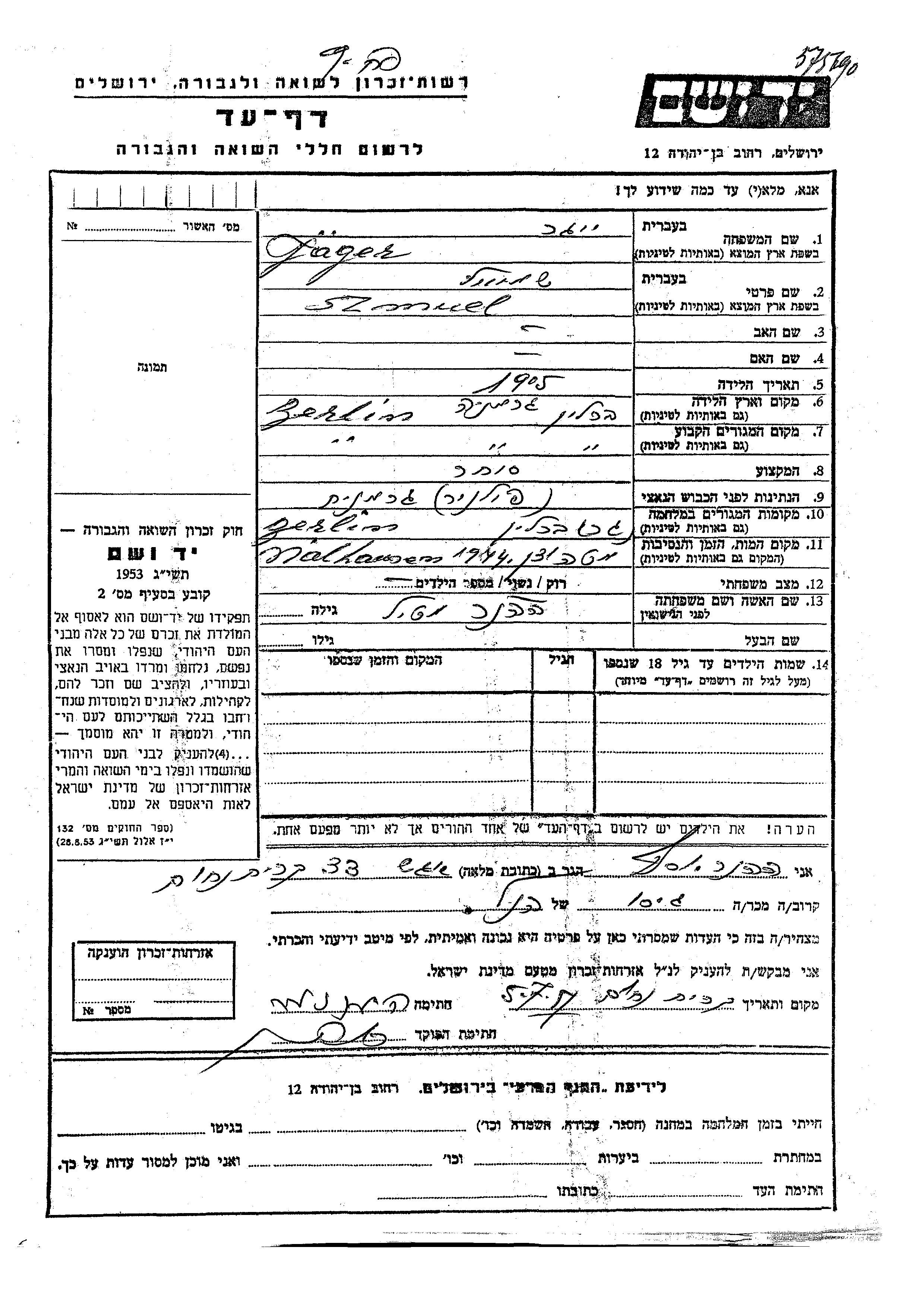 Jaeger Szmuel 1905 Berlin, גרמניה דף-עד