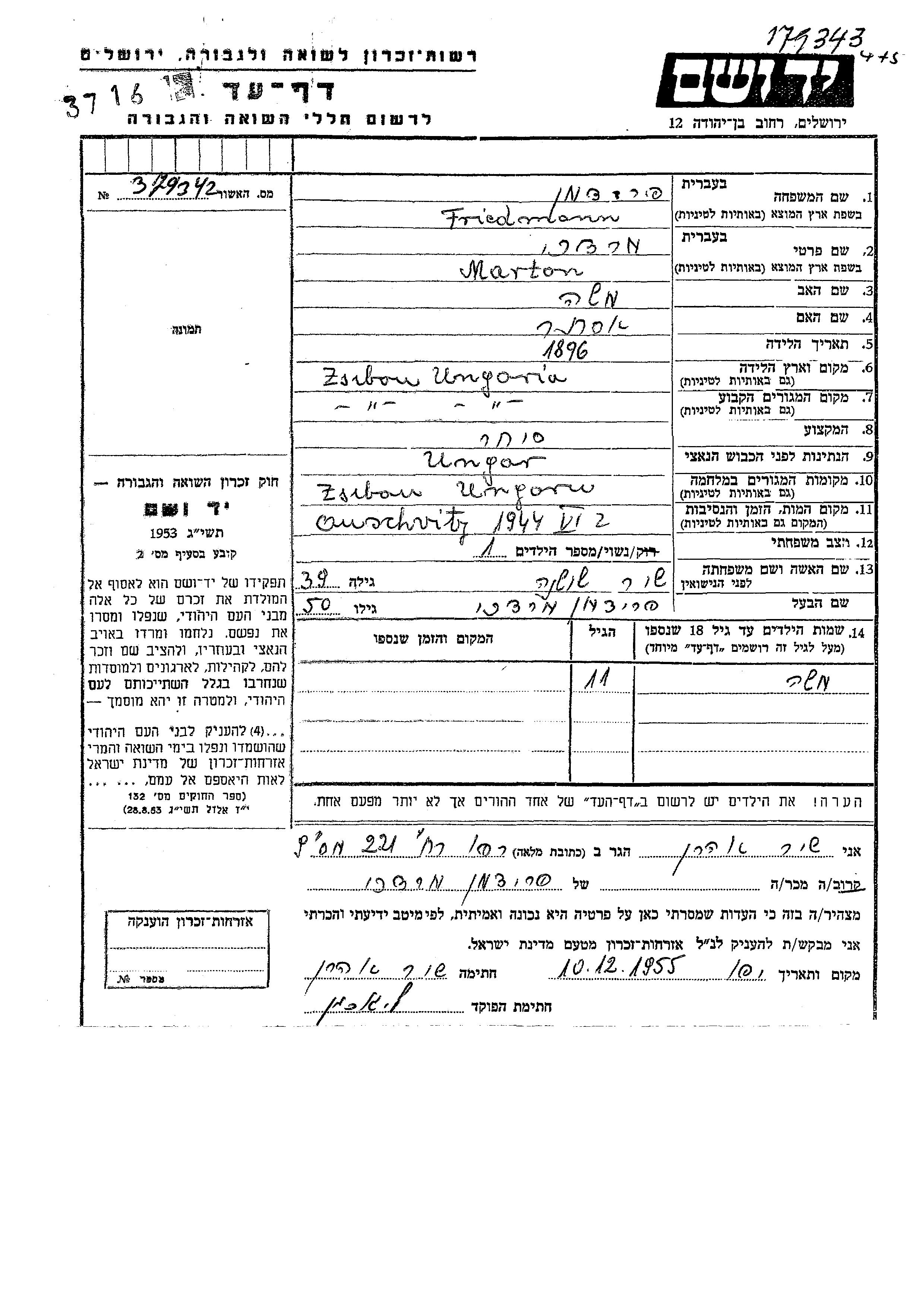 Friedmann מרדכי מרטון 1896 Zsibo, רומניה דף-עד