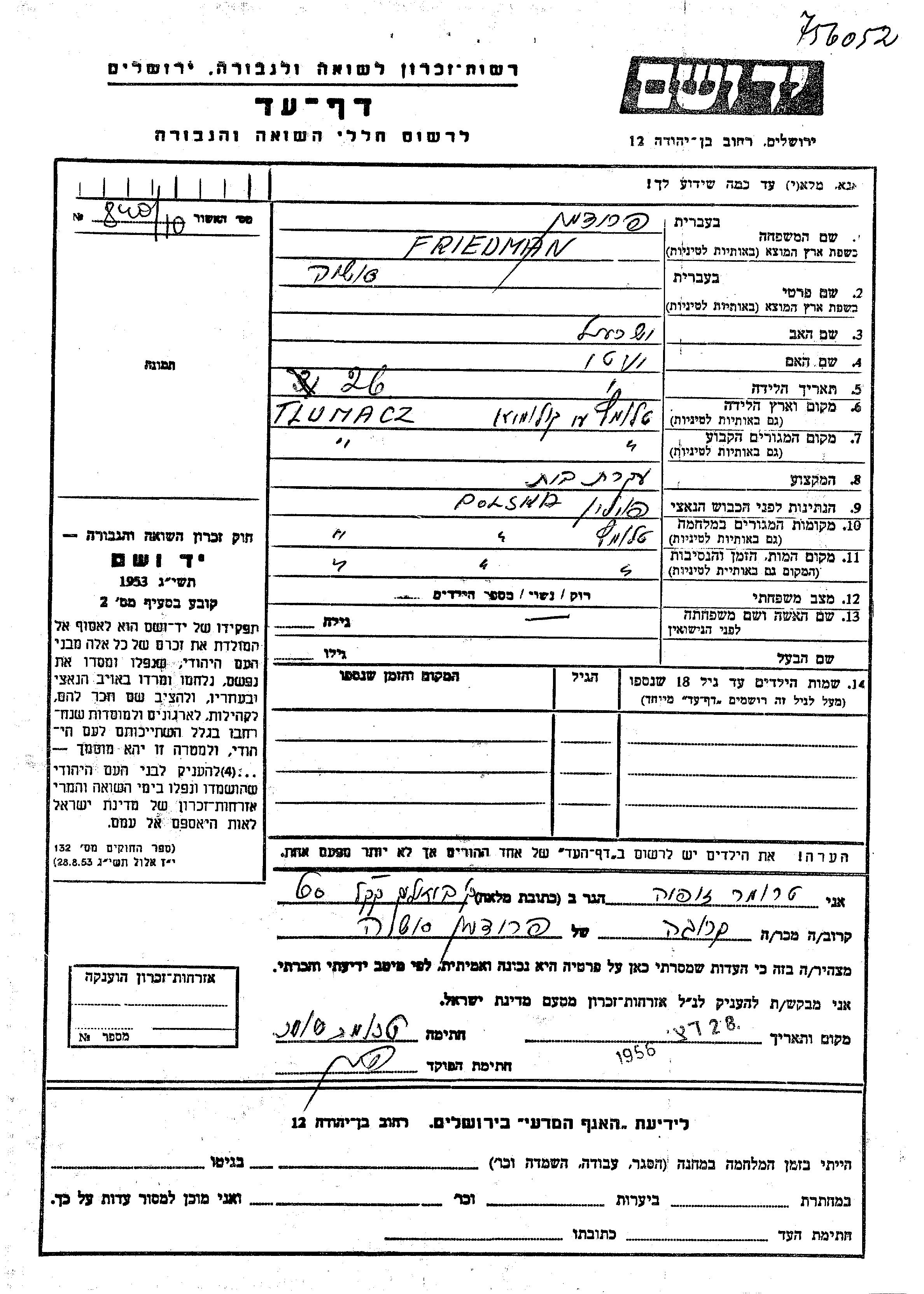 יד ושם - המפעל להנצחת השמות בדפי עד