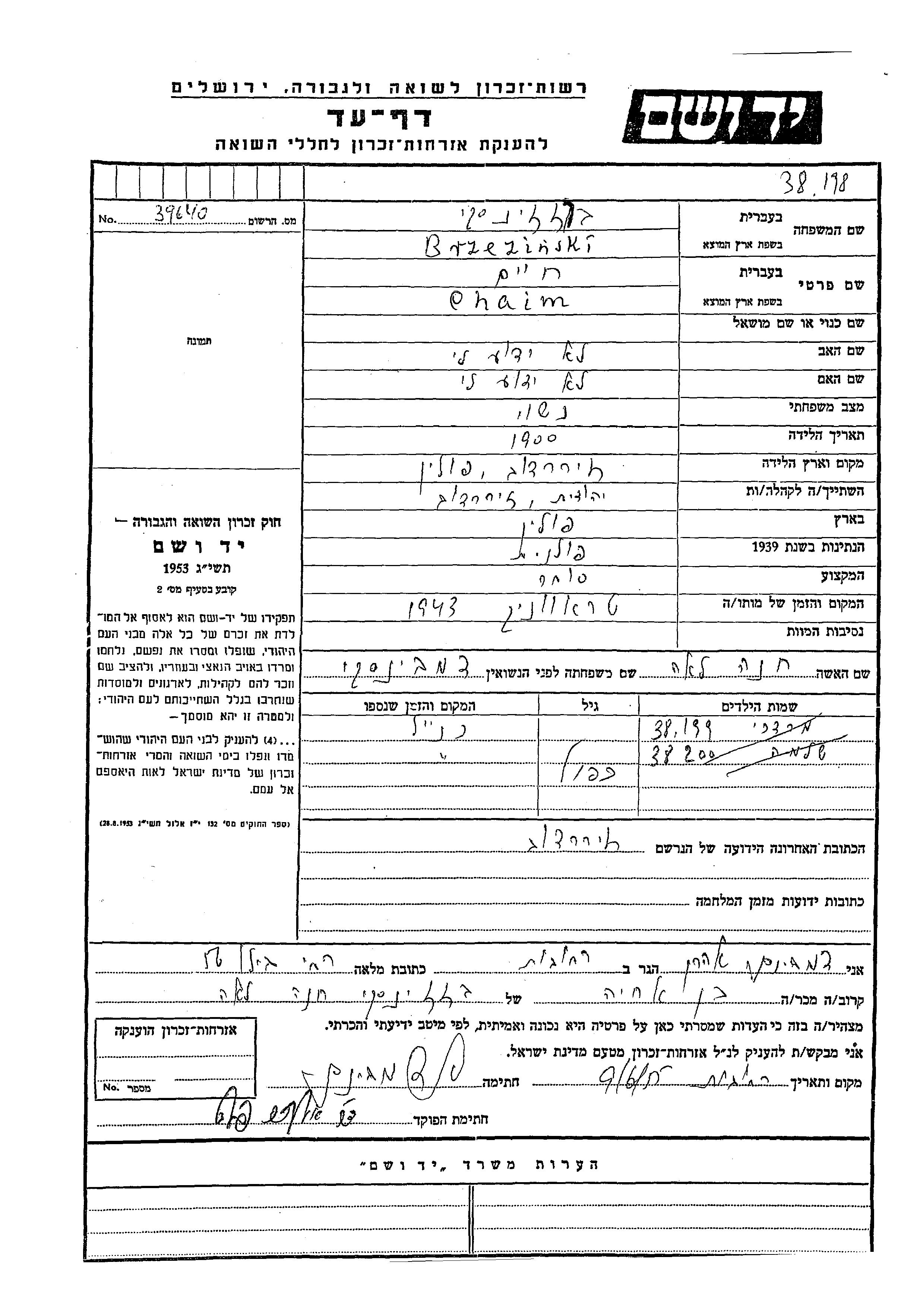 Brezinski בזזינסקי חיים 1900 מקום לא רשום, דף-עד