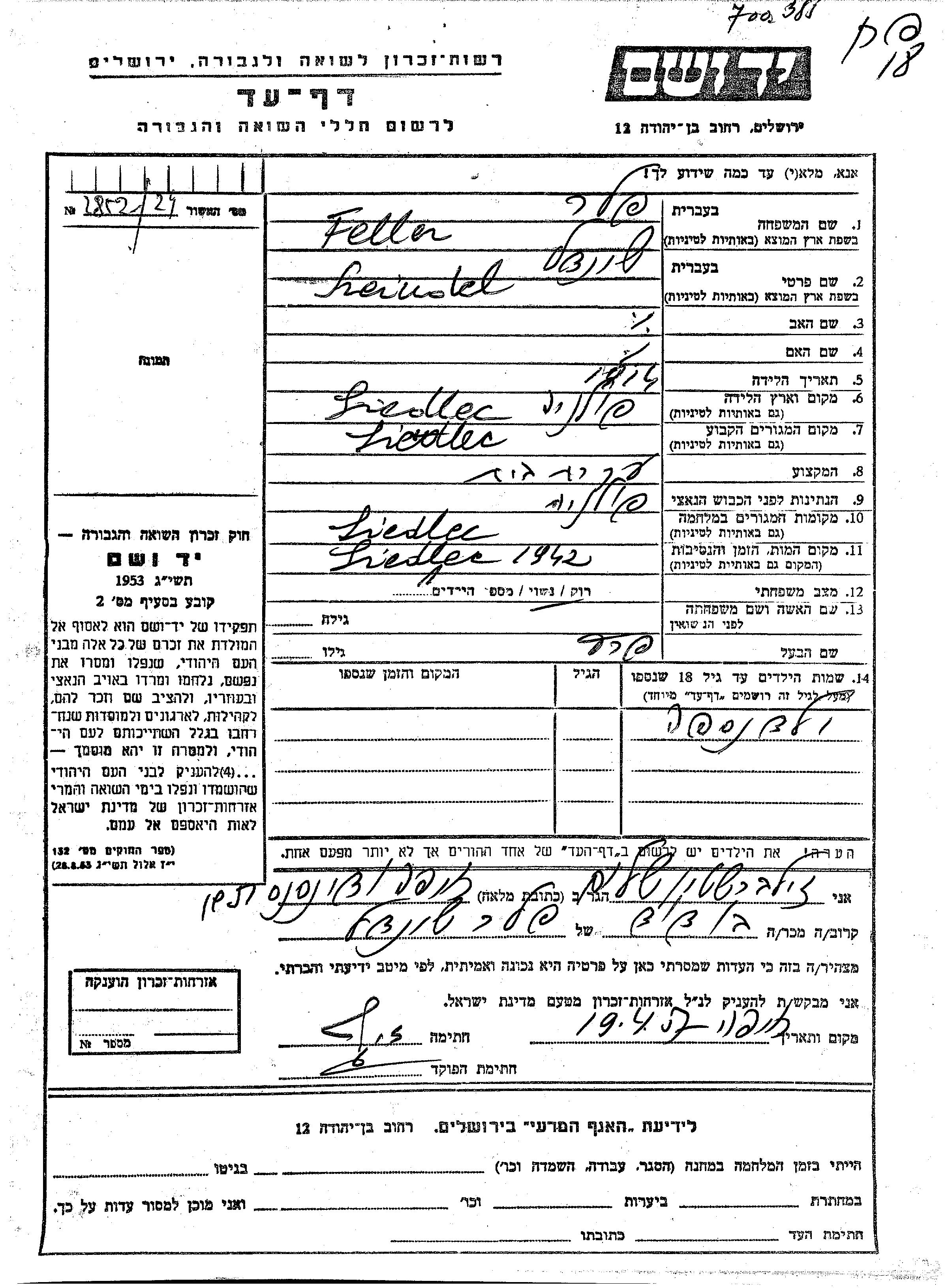 יד ושם - המפעל להנצחת השמות בדפי עד
