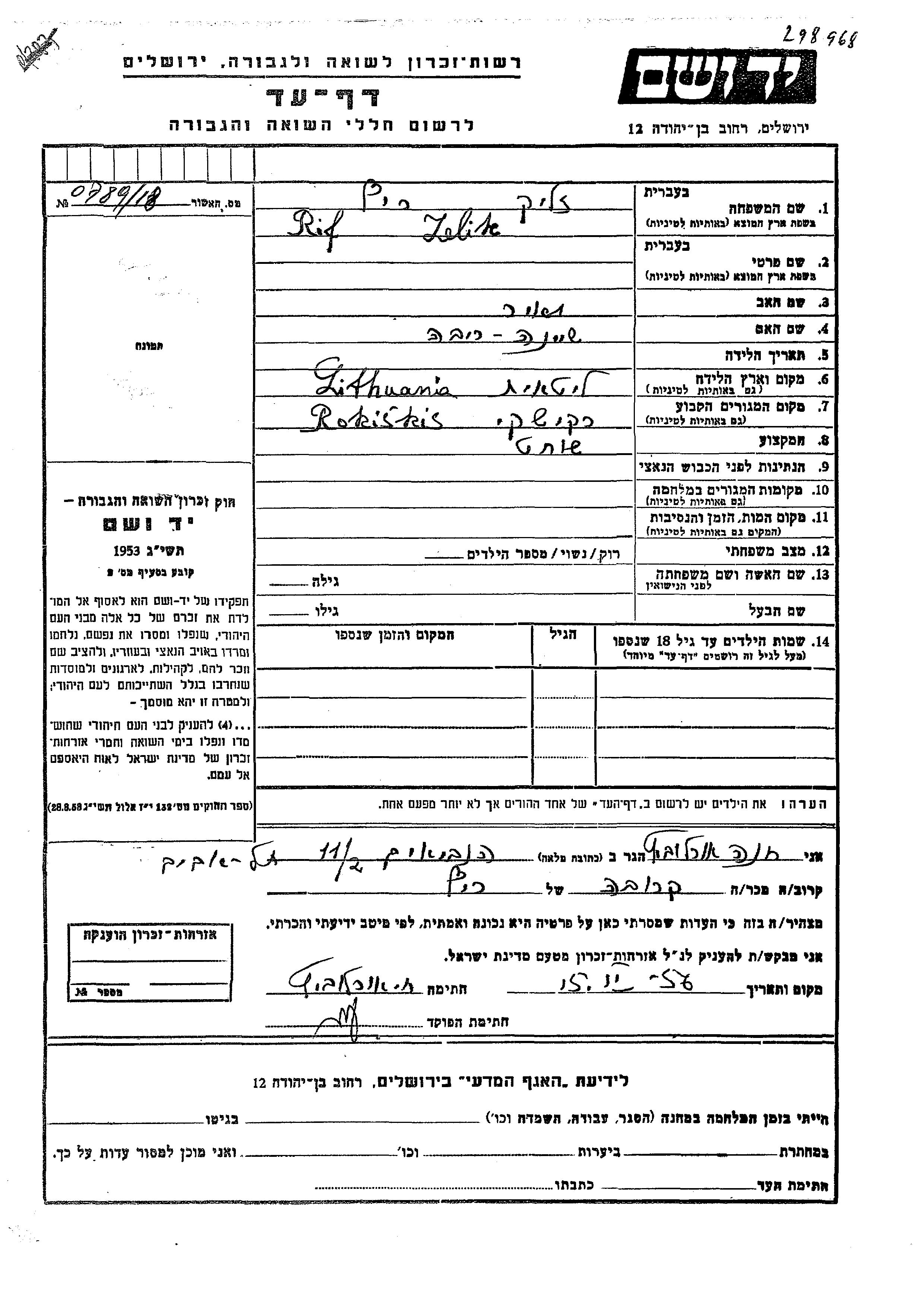 ריף זליק Rokiškis, ליטא דף-עד