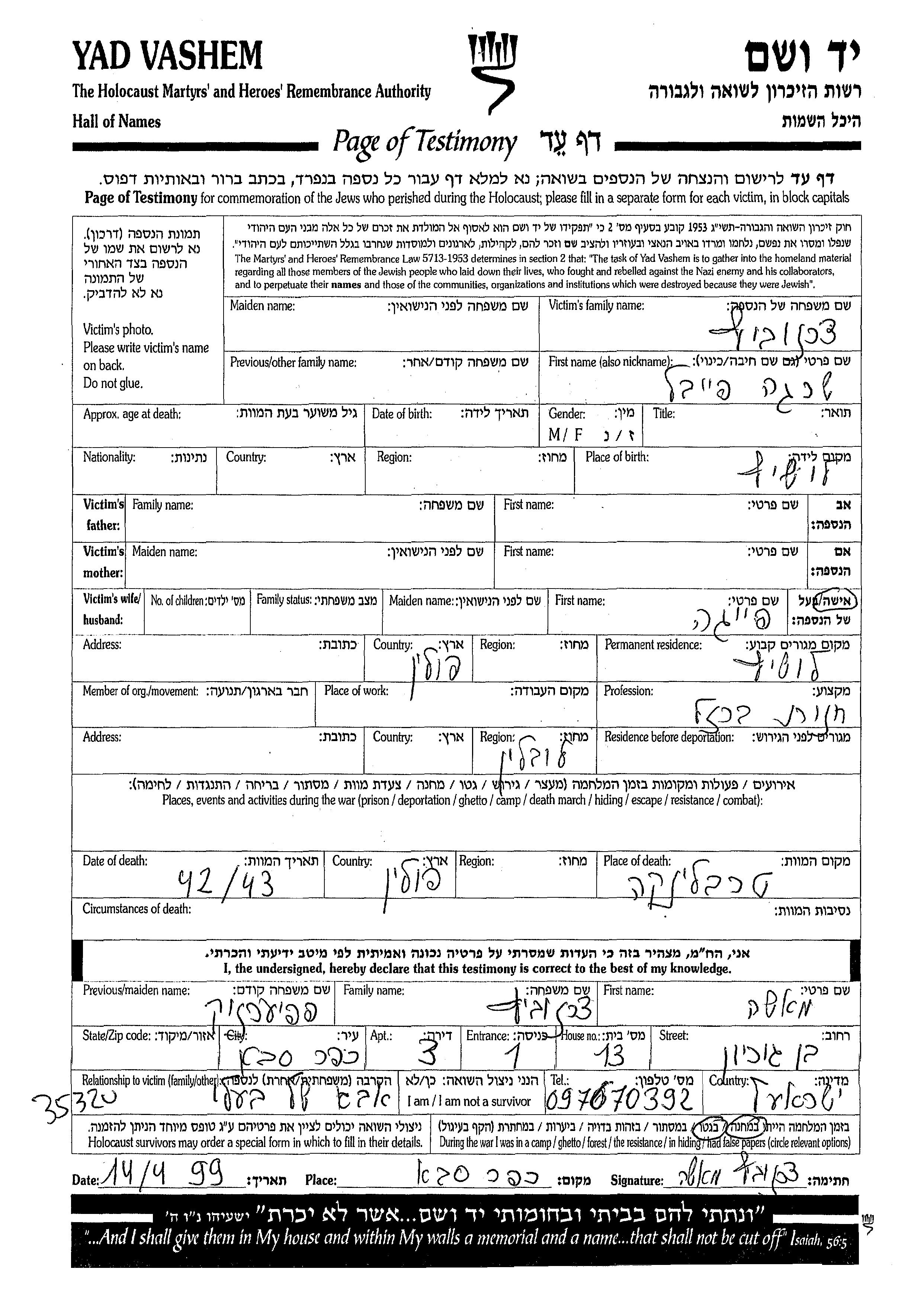חיפוש שם מוסר דף העד. חיפוש לפי כל שם פרטי, כולל כינוי או שם חיבה
