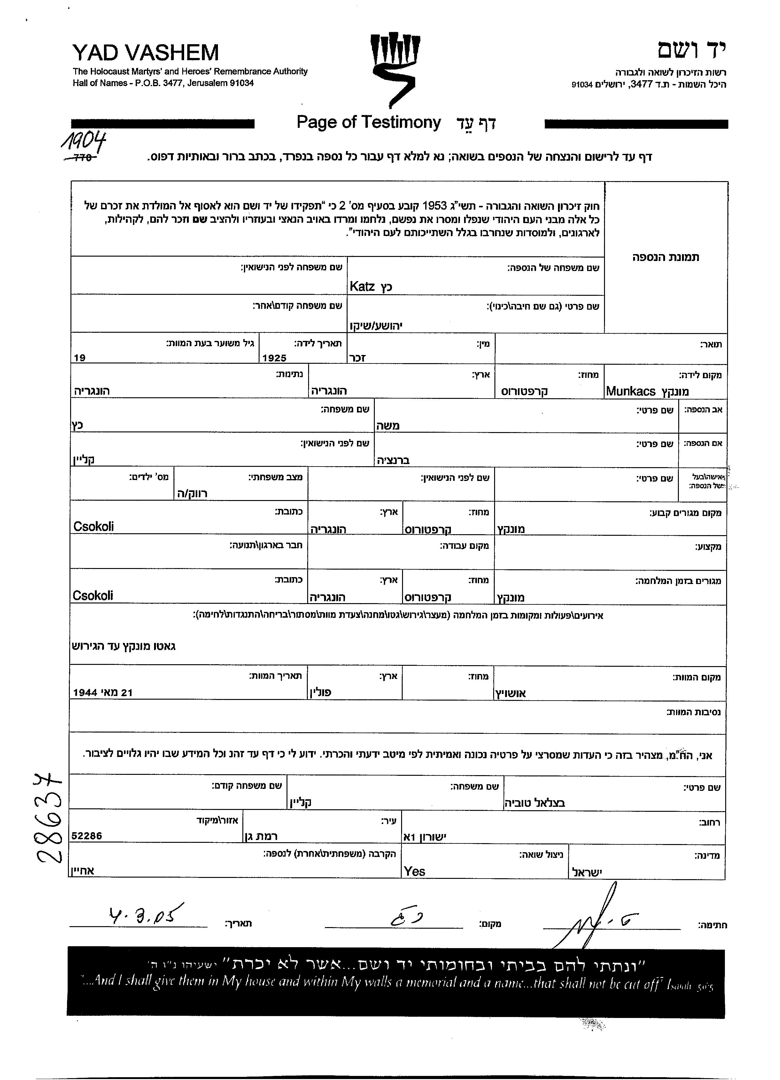 שמות נרדפים ושמות קשורים © מאז 2004. יד ושם. כל הזכויות שמורות.