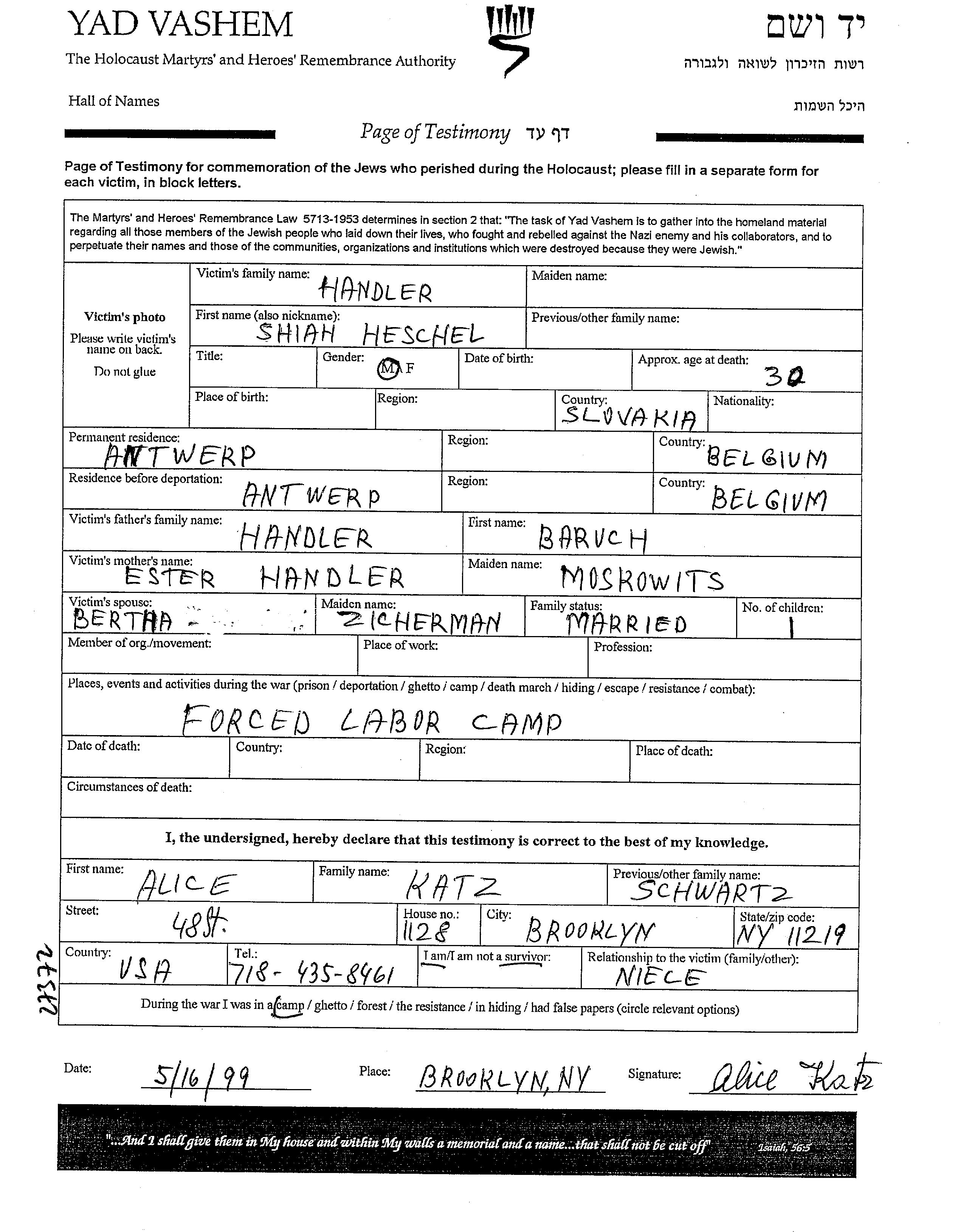 חיפוש שם מוסר דף העד. חיפוש לפי כל שם פרטי, כולל כינוי או שם חיבה