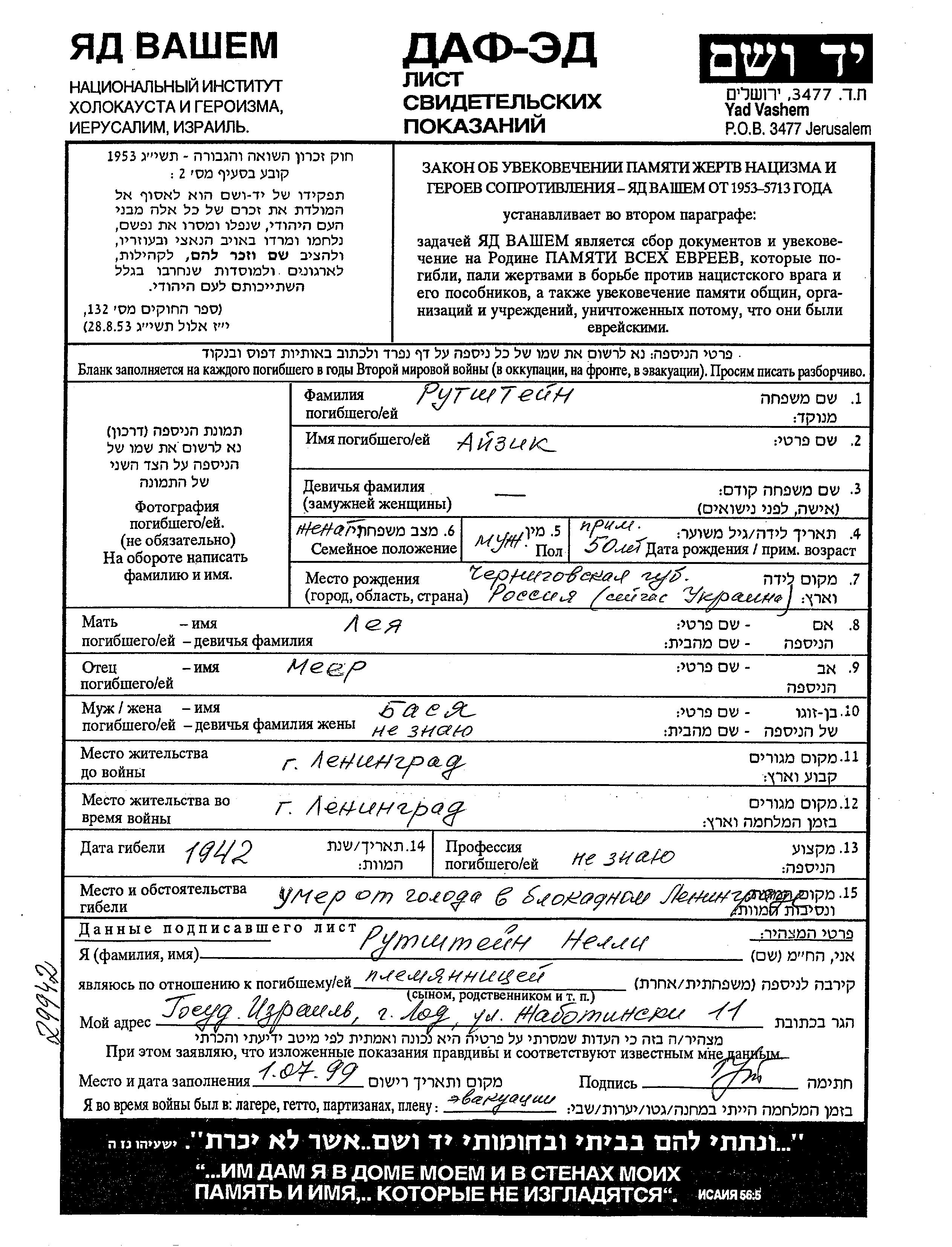 חיפוש שם מוסר דף העד. חיפוש לפי כל שם פרטי, כולל כינוי או שם חיבה