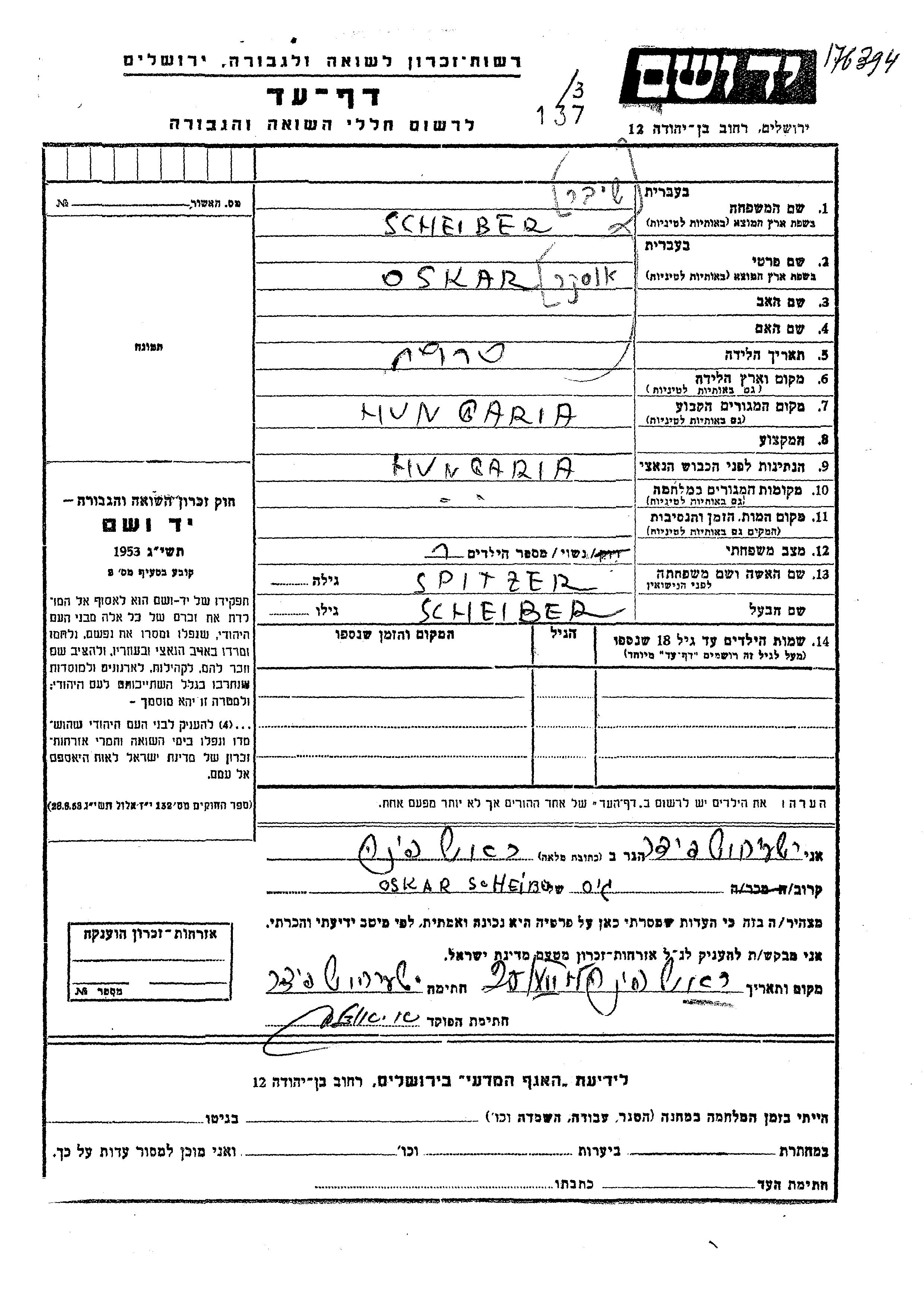 אוסקר Scheiber שיבר נולד בשנת 1910. הוא היה נשוי. לפני מלחמת העולם השניה התגורר בהונגריה. בזמן המלחמה הוא היה בהונגריה.