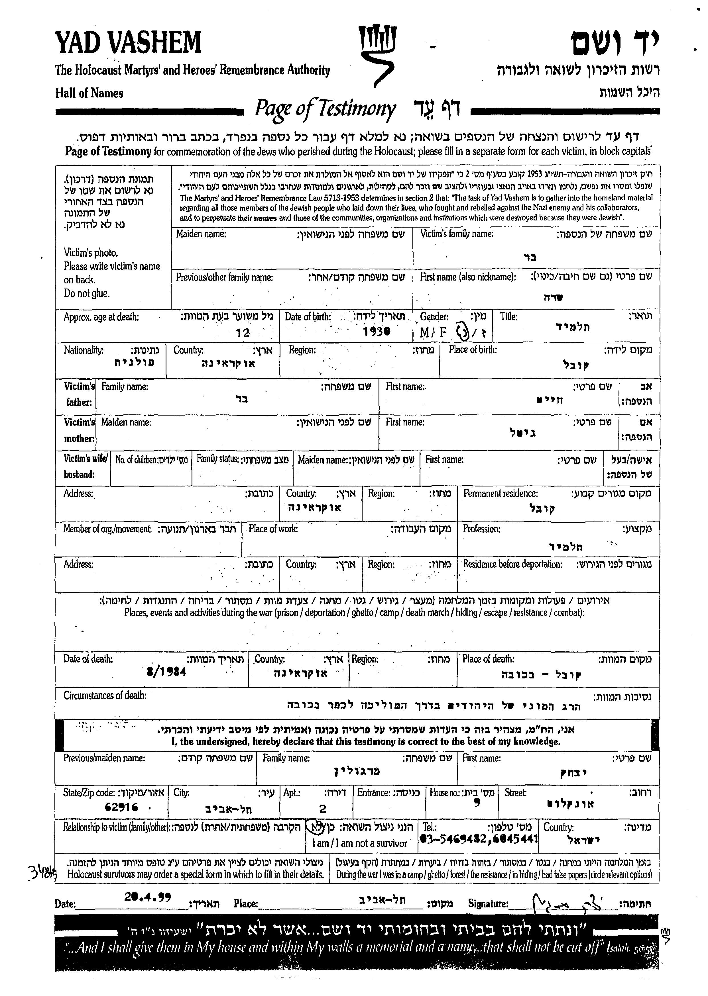 יד ושם - המפעל להנצחת השמות בדפי עד