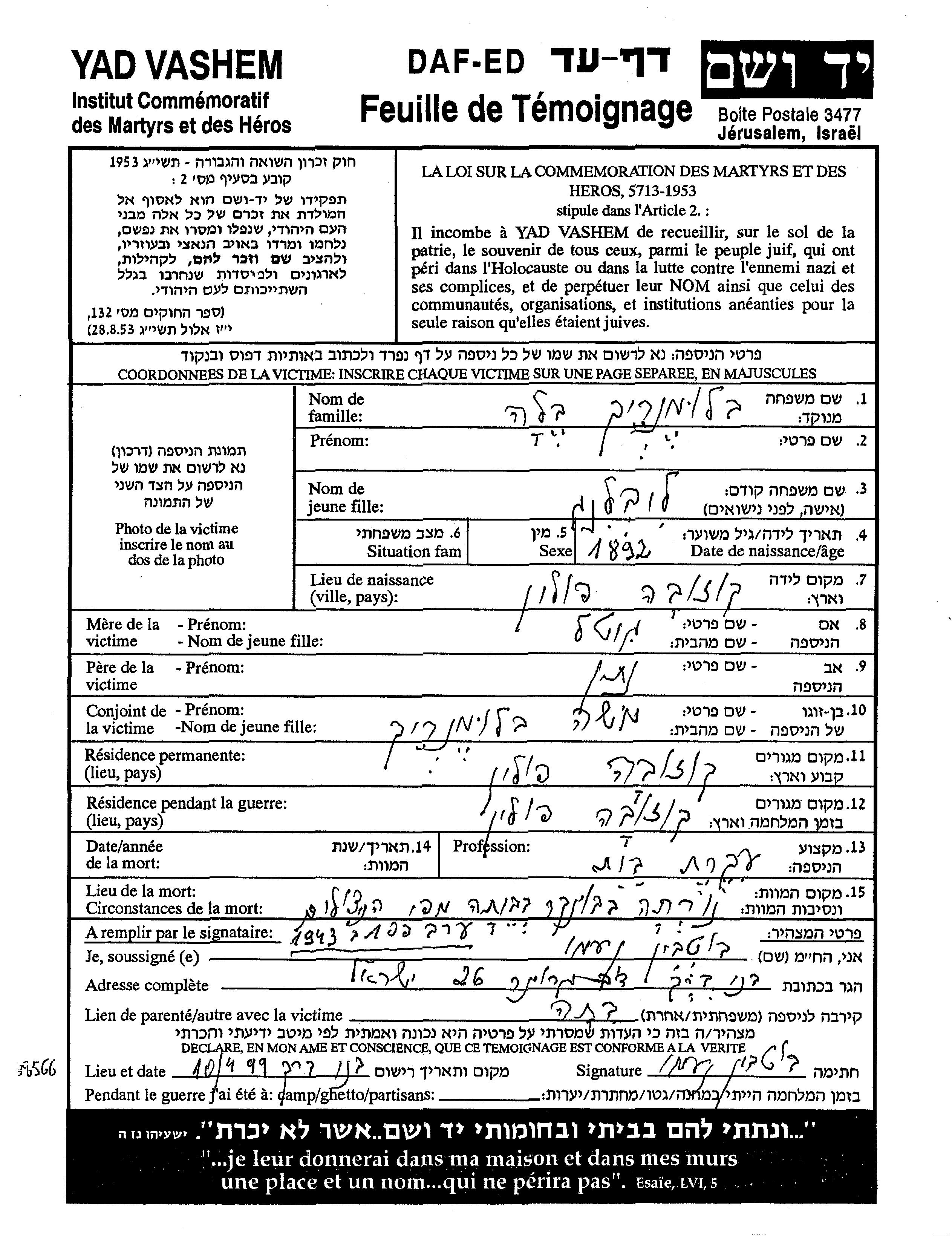 יד ושם - המפעל להנצחת השמות בדפי עד