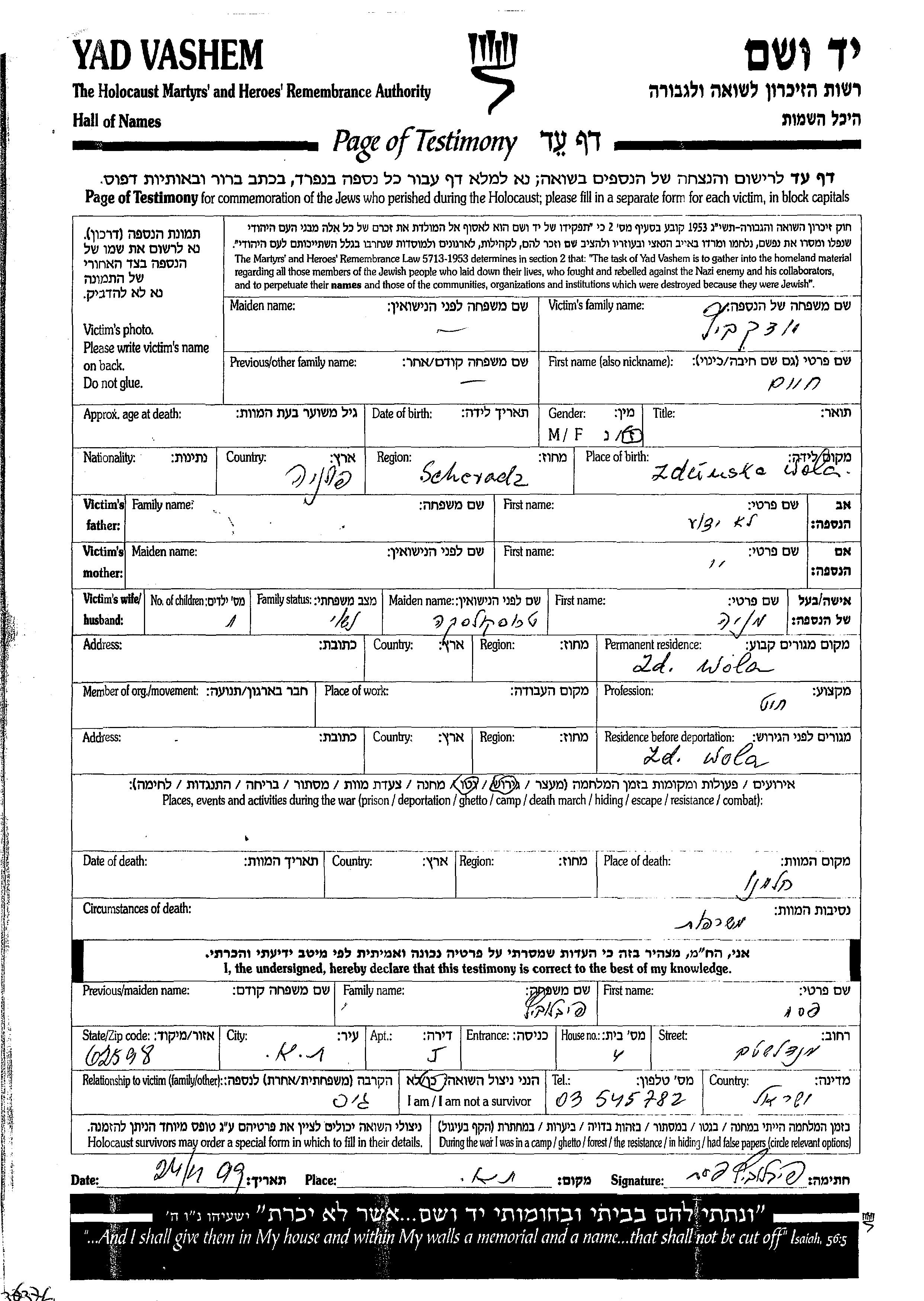 יד ושם - המפעל להנצחת השמות בדפי עד
