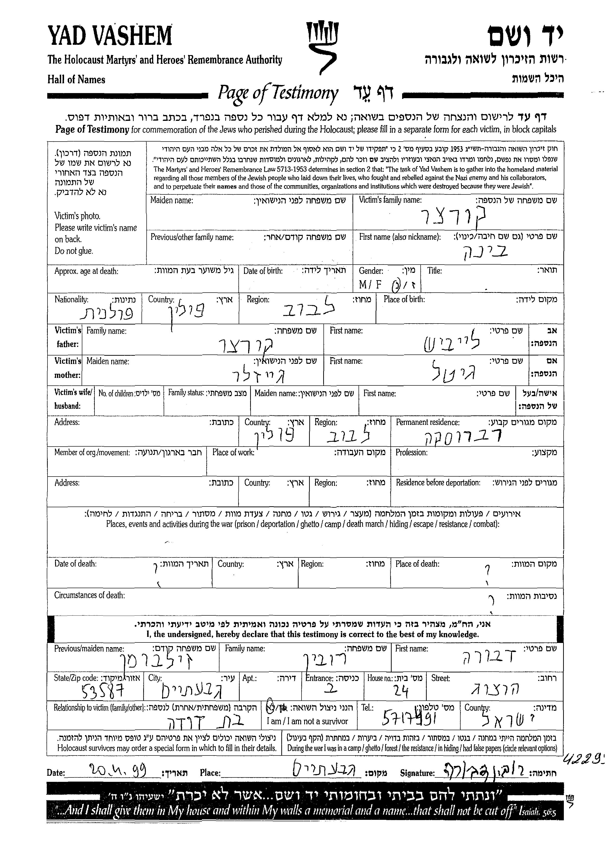 יד ושם - המפעל להנצחת השמות בדפי עד