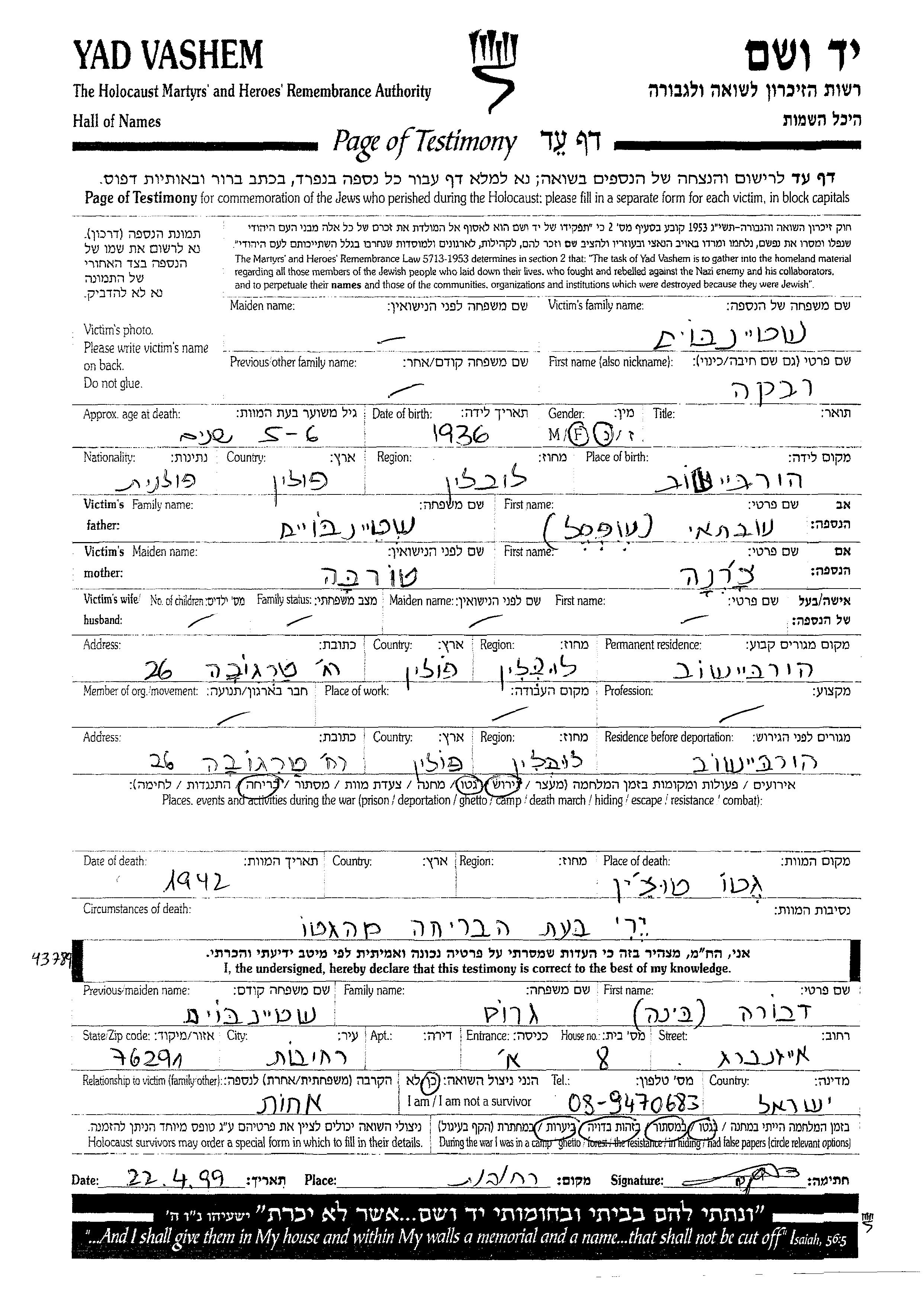 רבקה שטיינבוים נולדה בHorbjeshow שבפולין בשנת 1936 לשבתאי וצ'רנה לבית טורבה. היא היתה ילדה. לפני מלחמת העולם השניה התגוררה בHorbjeshow שבפולין. בזמן המלחמה היא היתה בHorbjeshow שבפולין. רבקה נרצחה בשואה. מקום המוות: Tuczyn שבפולין בשנת 1942.