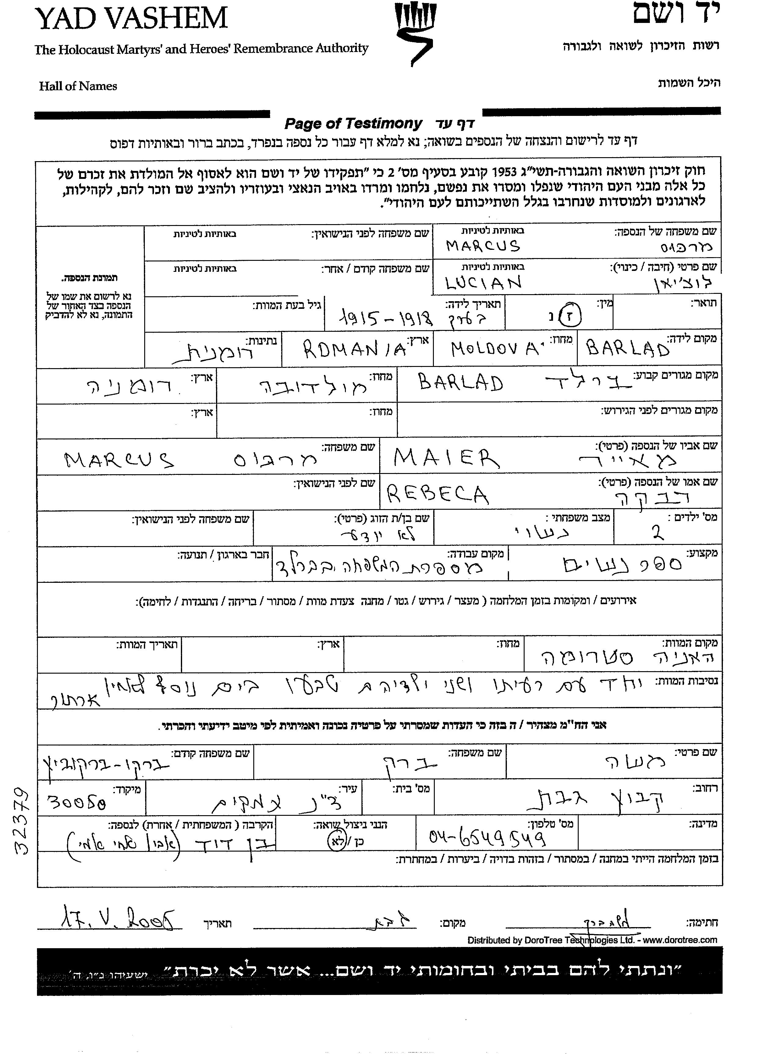 עיר/כפר, גטו/מחנה או אתר רצח או מחוז/אזור או מדינה. שם מקום ניתן לחפש רק בא-ב לטיני.