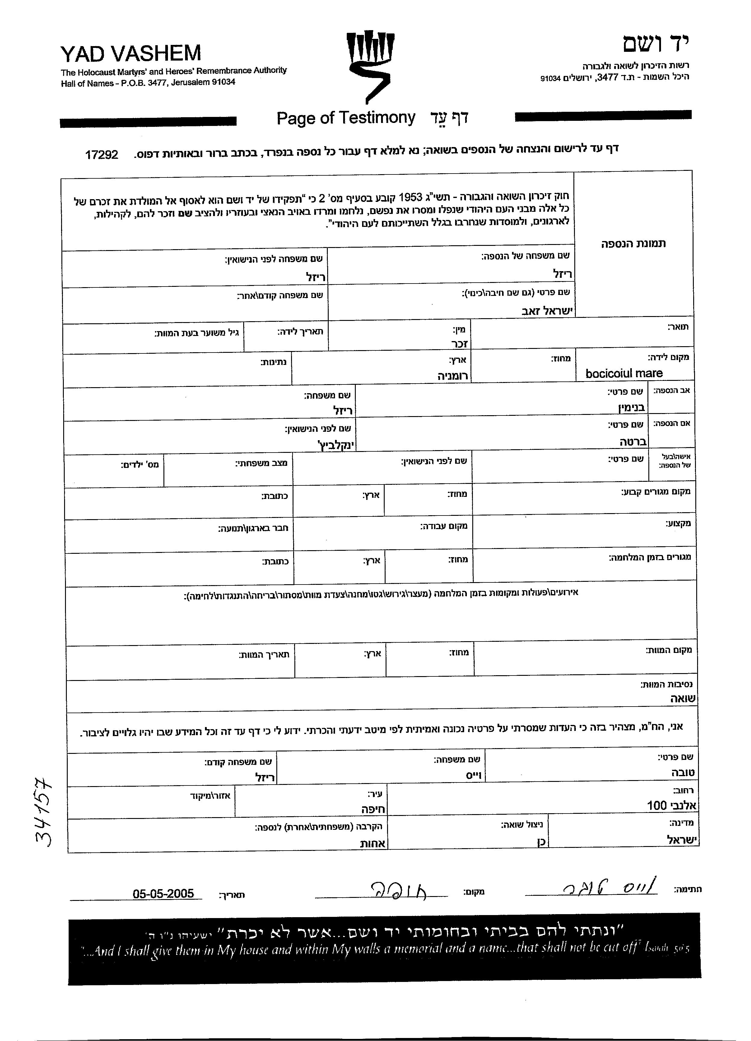 חיפוש שם מוסר דף העד. חיפוש לפי כל שם פרטי, כולל כינוי או שם חיבה