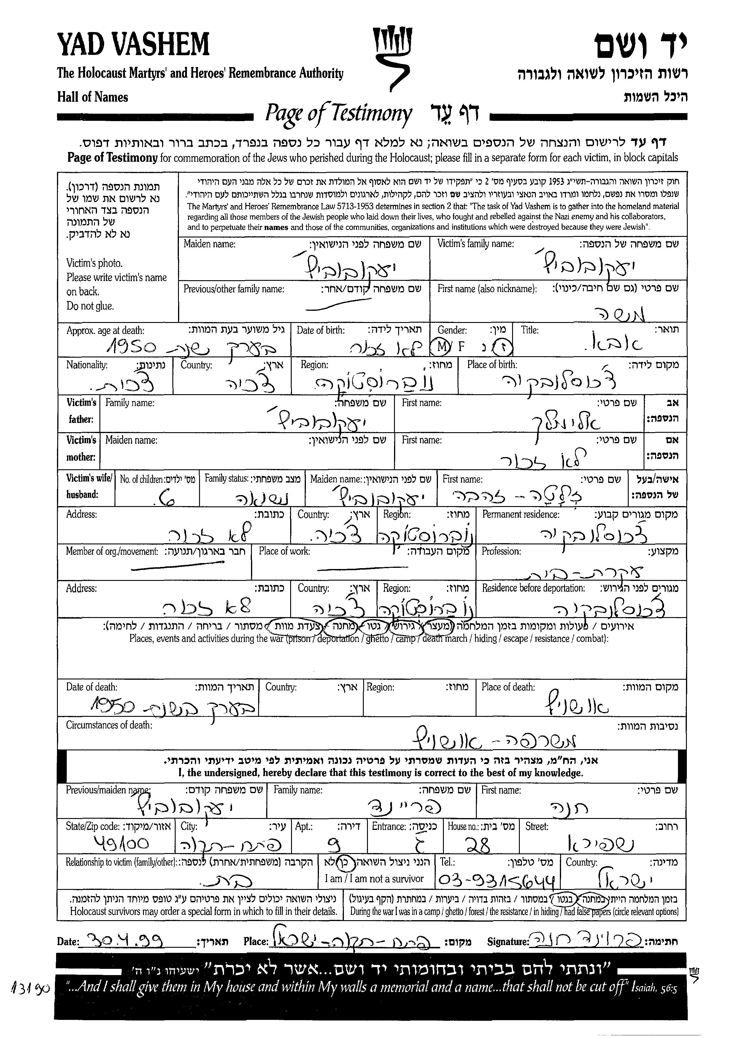 יד ושם - המפעל להנצחת השמות בדפי עד