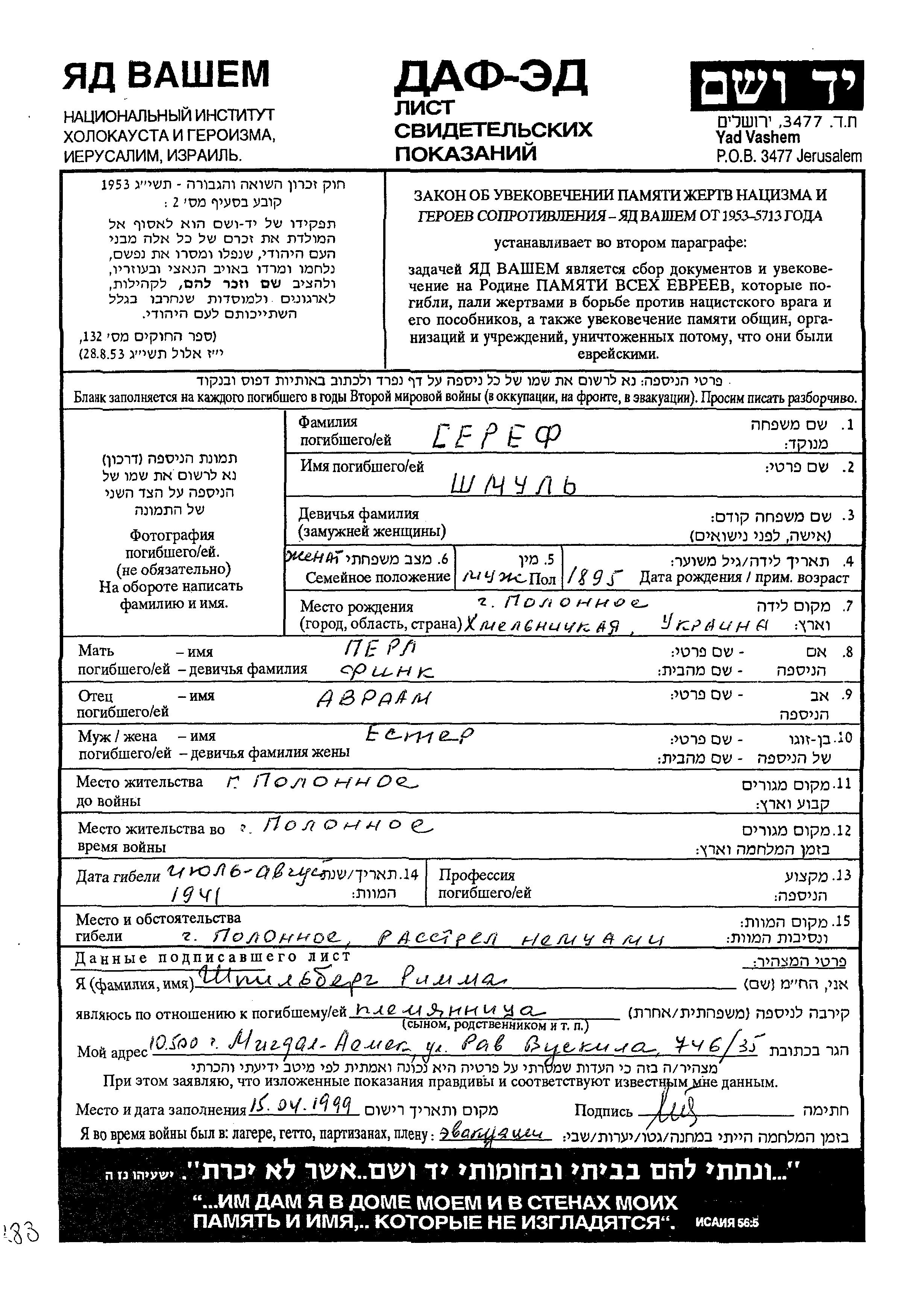 יד ושם - המפעל להנצחת השמות בדפי עד