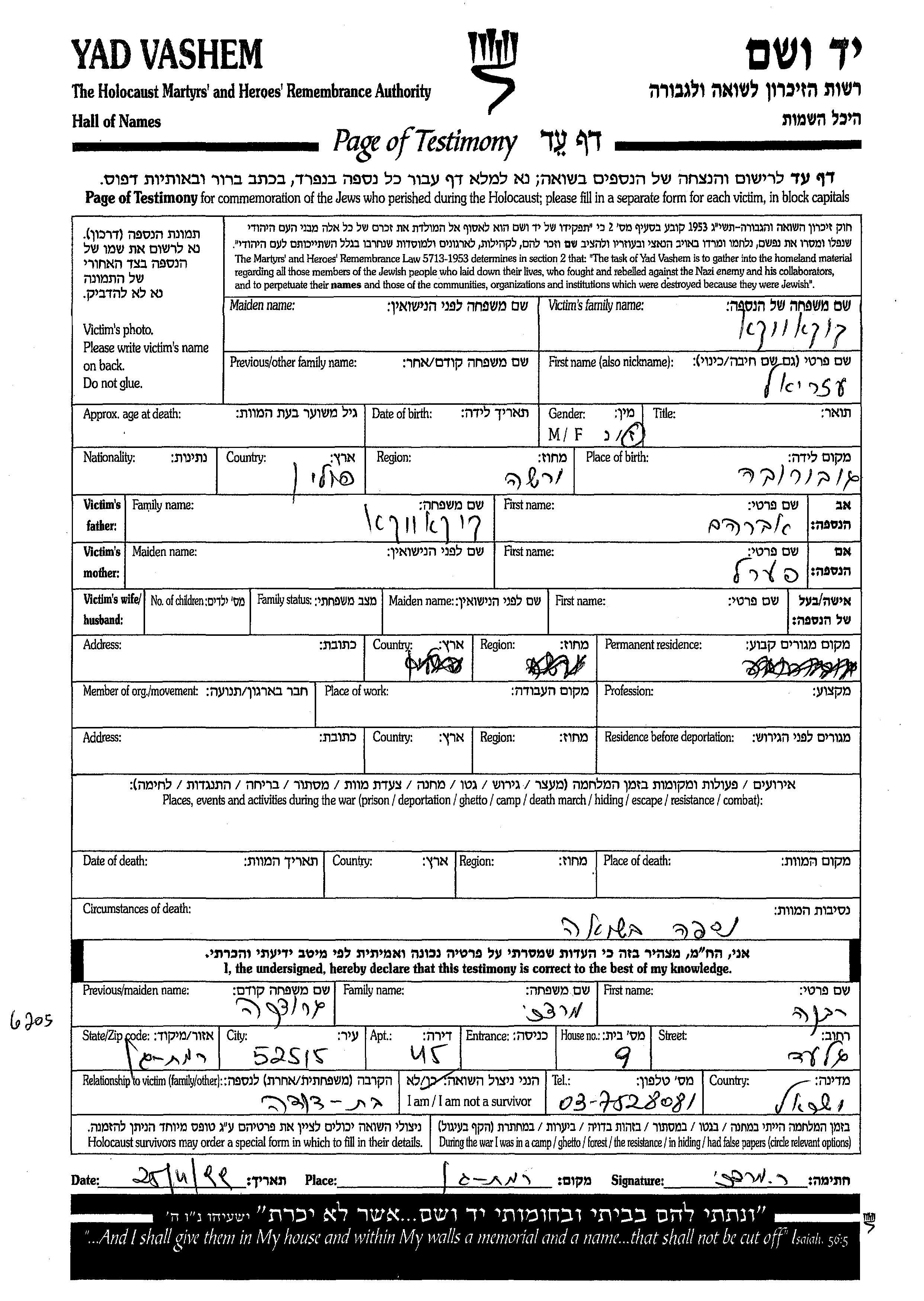יד ושם - המפעל להנצחת השמות בדפי עד