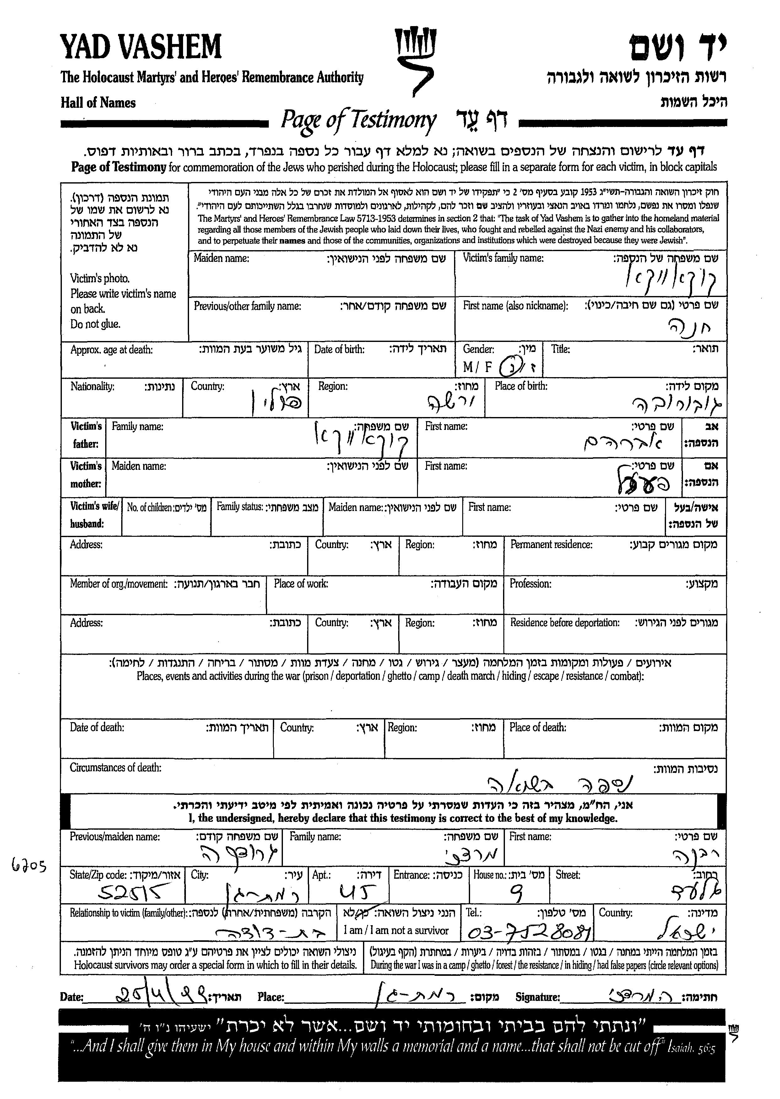 חנה נרצחה בשואה.