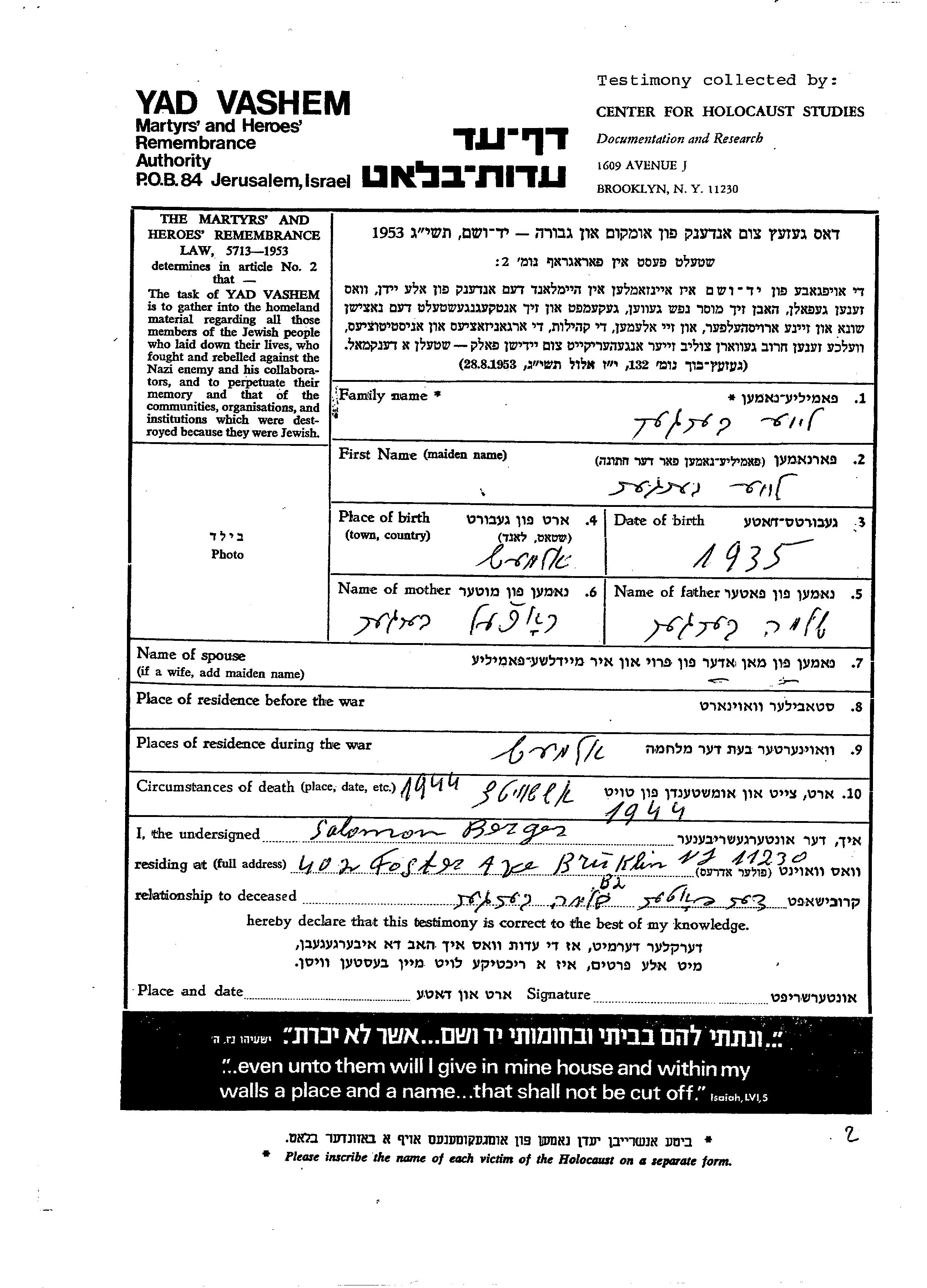 יד ושם - המפעל להנצחת השמות בדפי עד