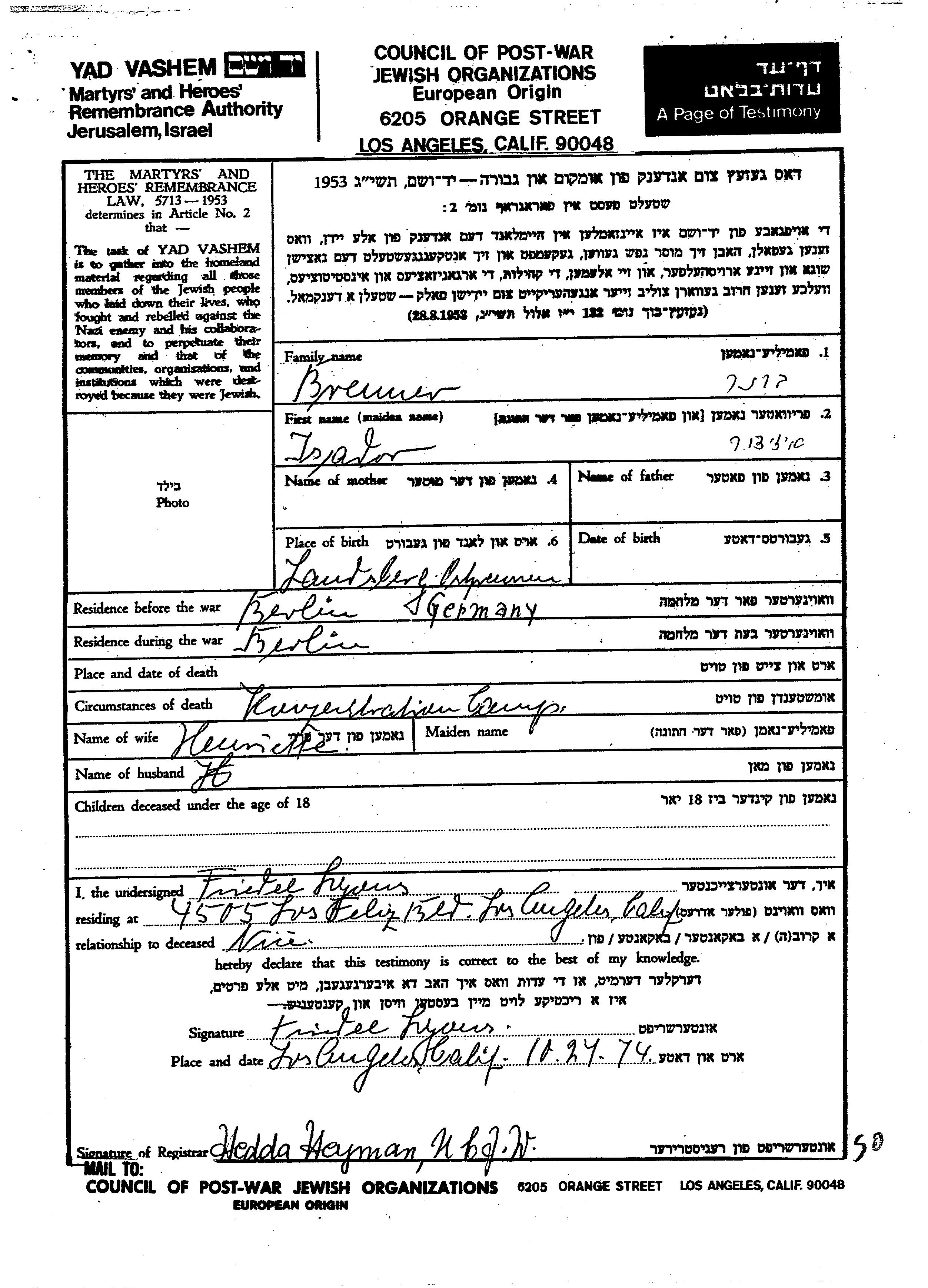 יד ושם - המפעל להנצחת השמות בדפי עד