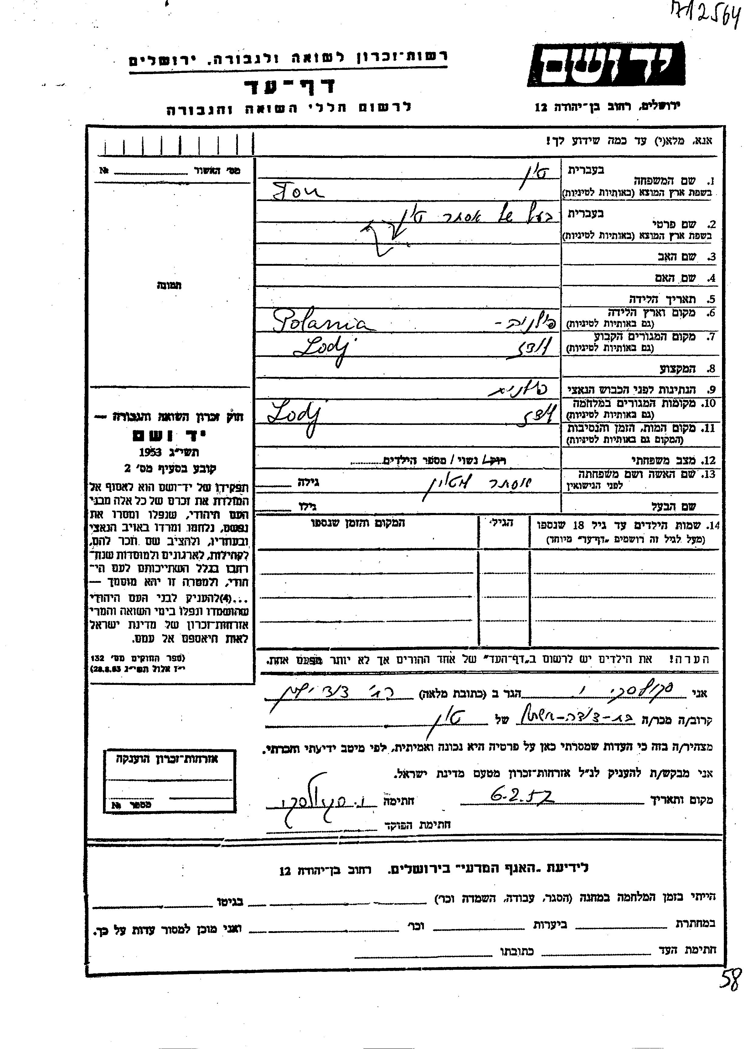יד ושם - המפעל להנצחת השמות בדפי עד
