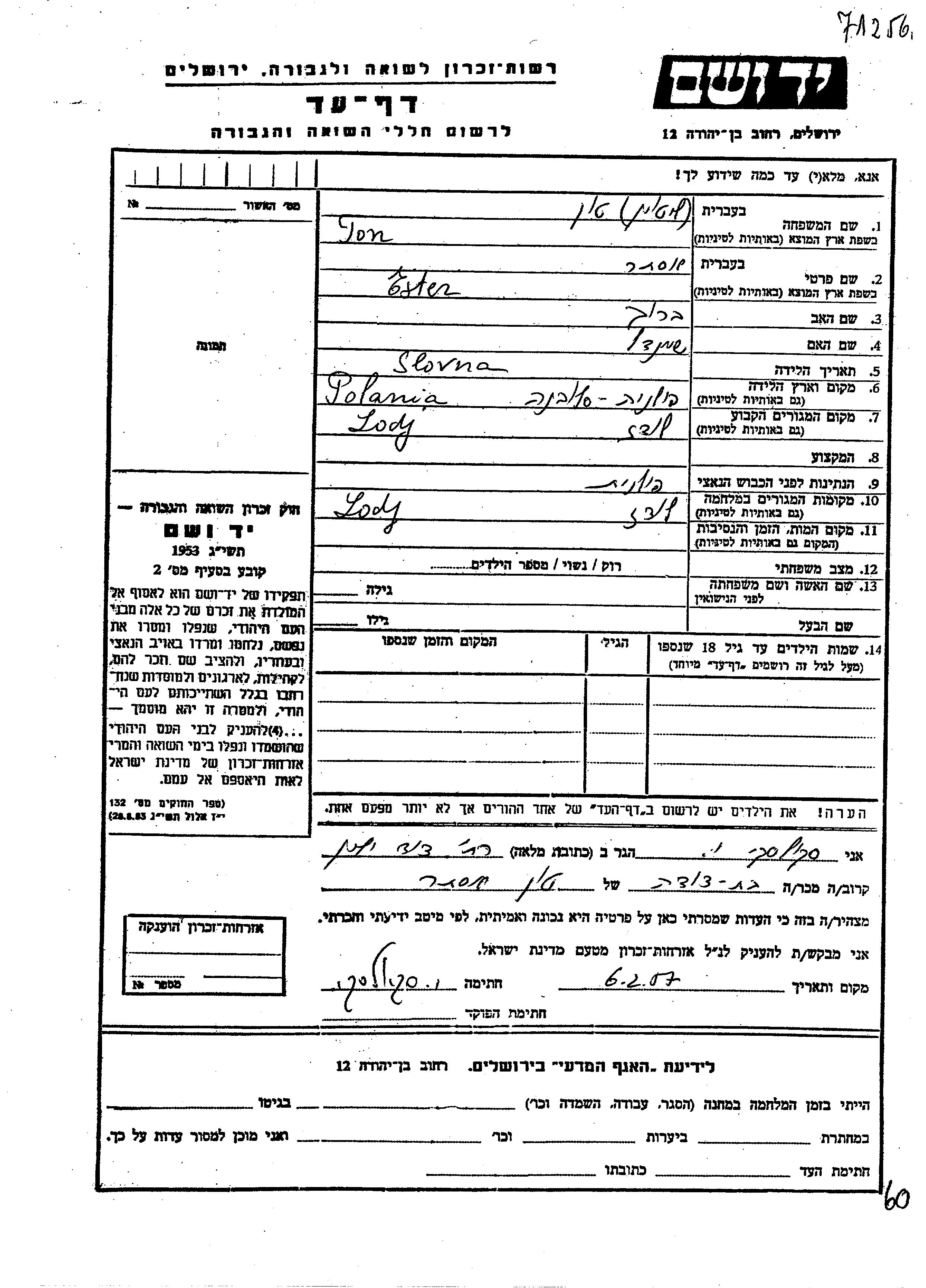 יד ושם - המפעל להנצחת השמות בדפי עד