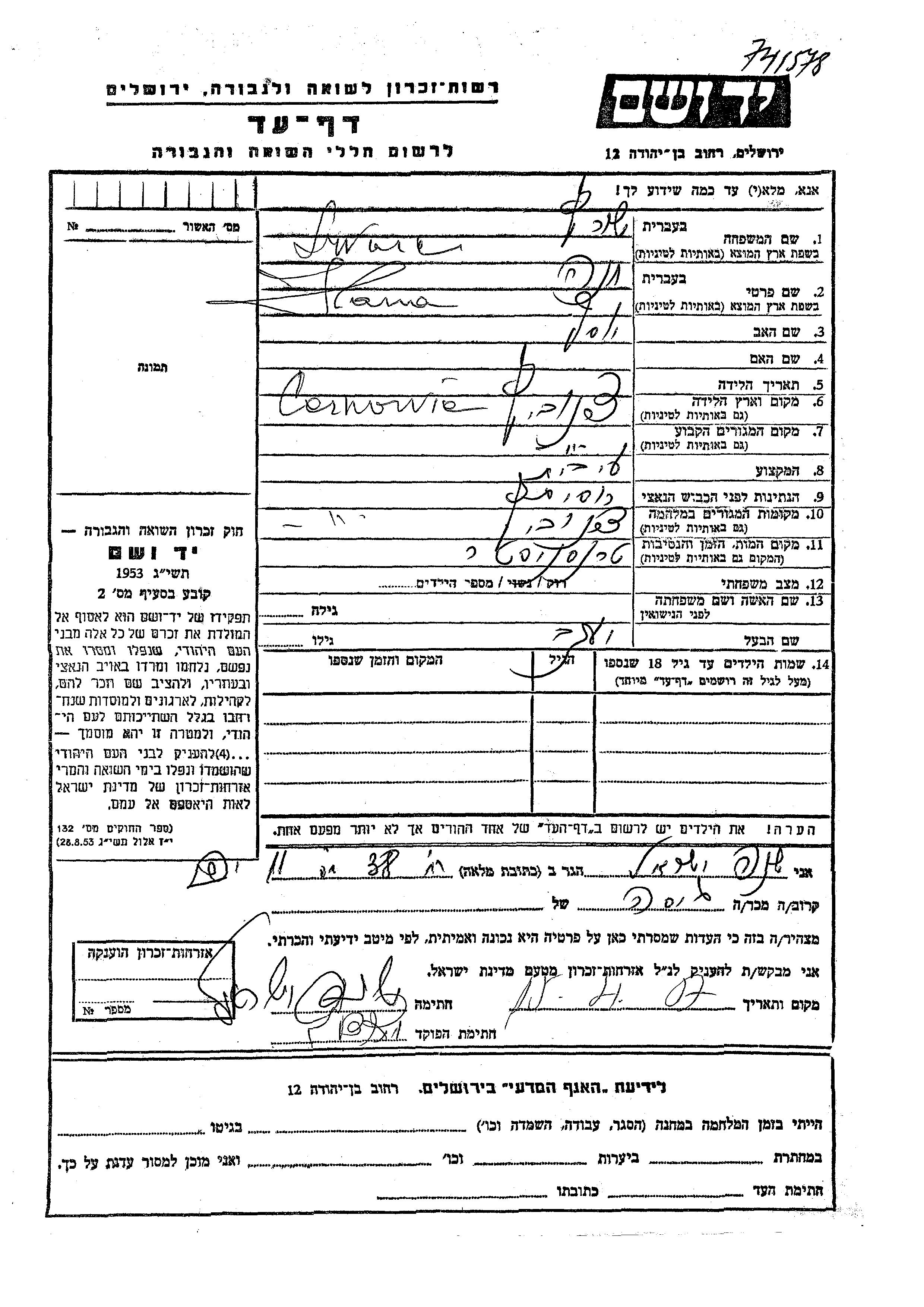 יד ושם - המפעל להנצחת השמות בדפי עד