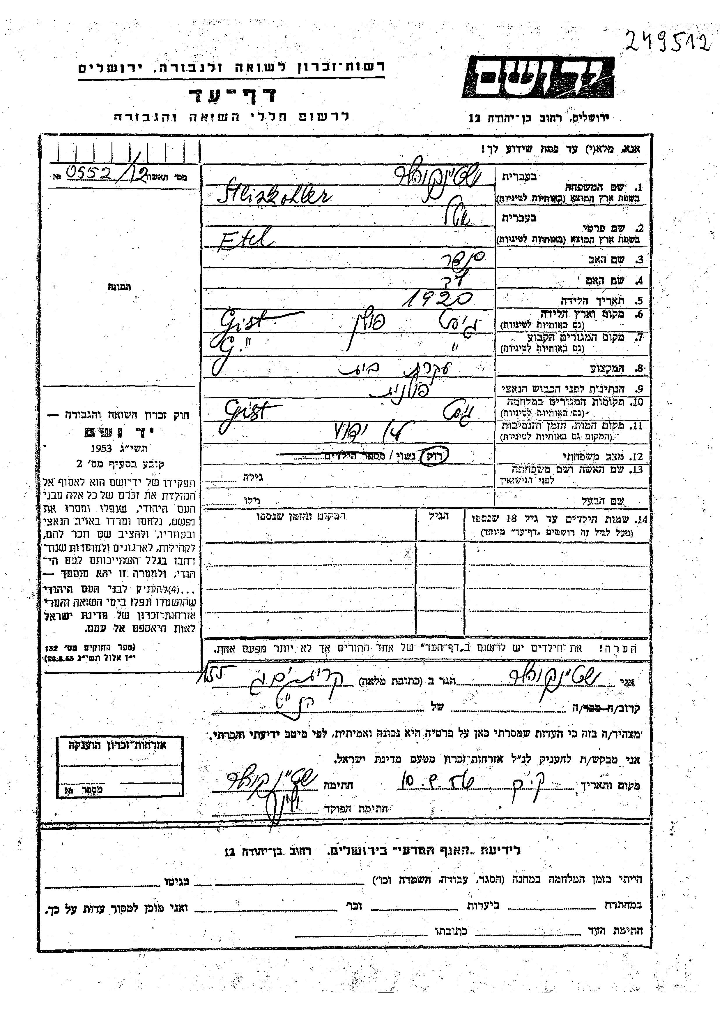 יד ושם - המפעל להנצחת השמות בדפי עד