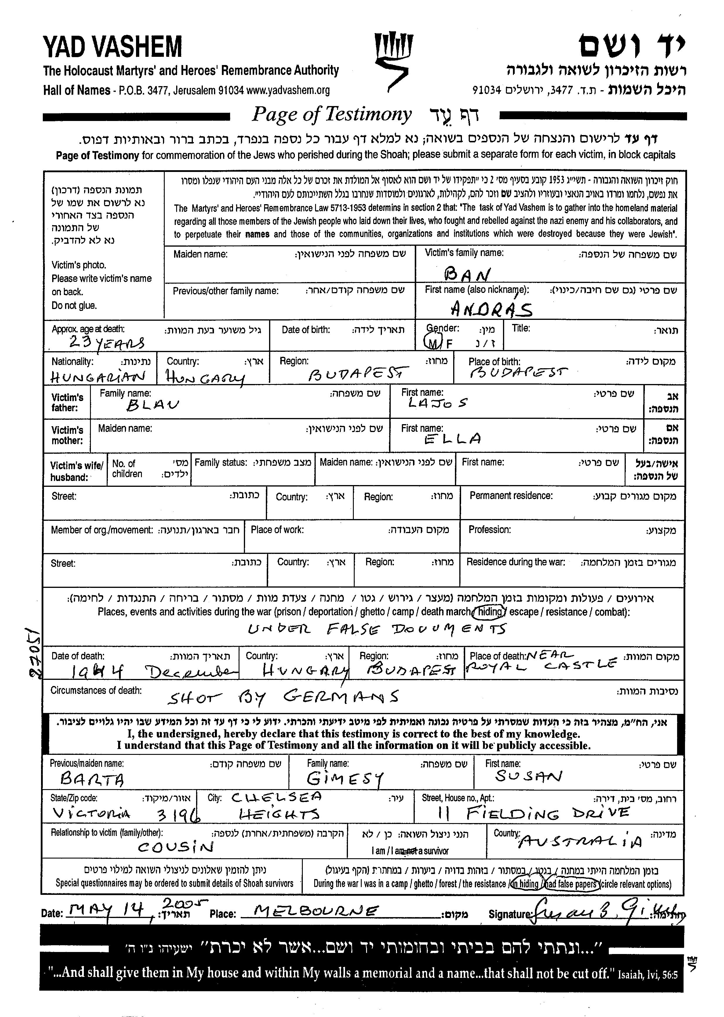 עיר/כפר, גטו/מחנה או אתר רצח או מחוז/אזור או מדינה. שם מקום ניתן לחפש רק בא-ב לטיני.