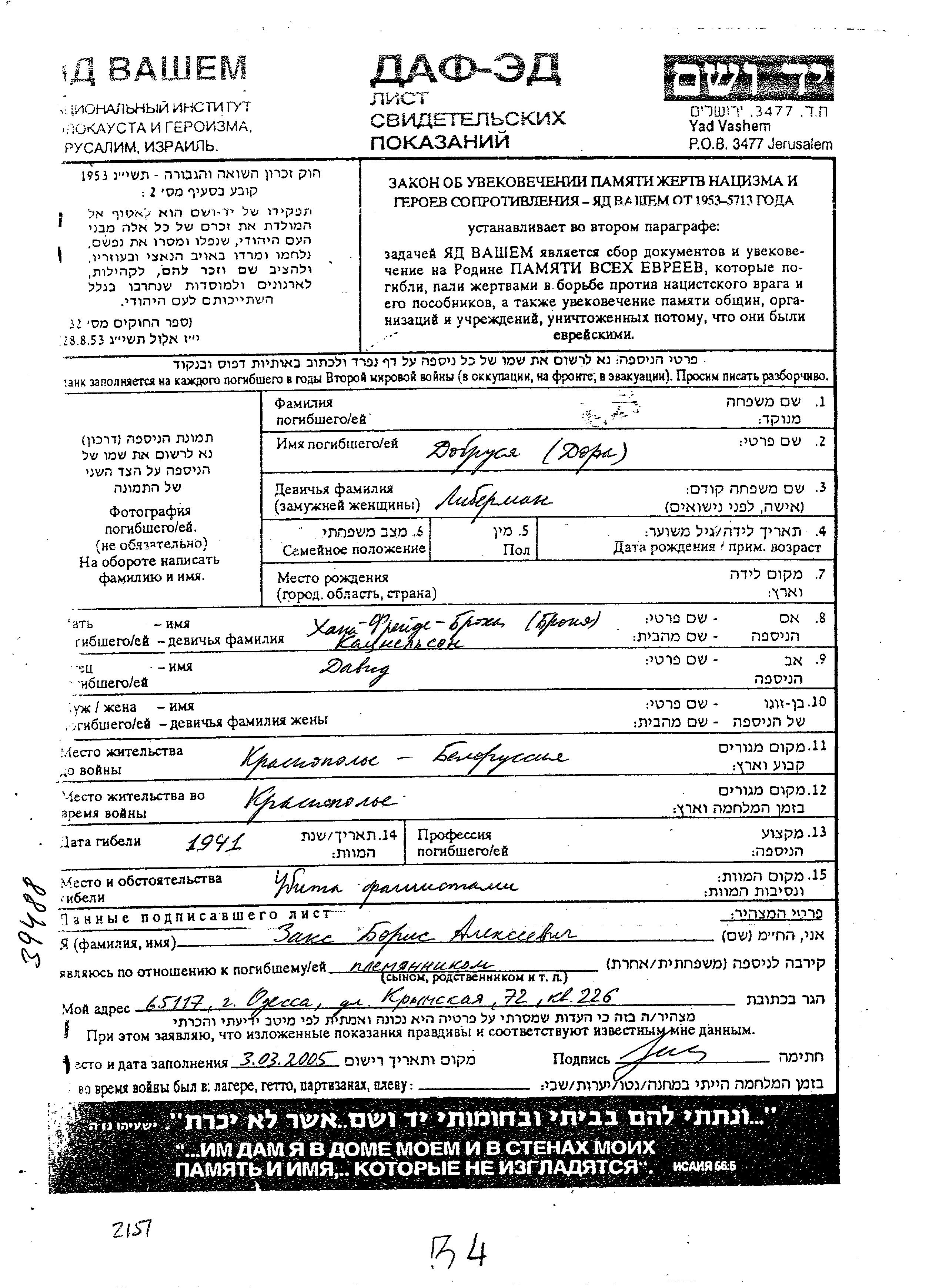 שם משפחה לא ידוע Dobrusya דורה Krasnopolye, ביאלורוסיה (ברה"מ) דף-עד