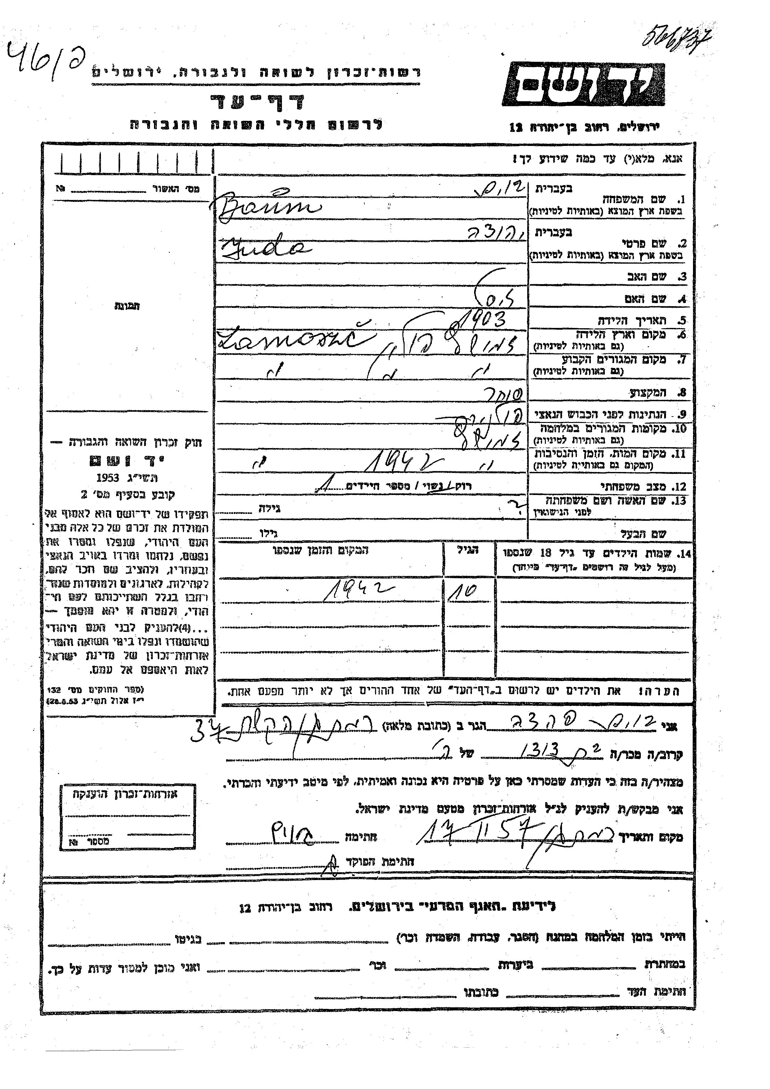 שם משפחה שם פרטי תאריך לידה מקום מקור המידע