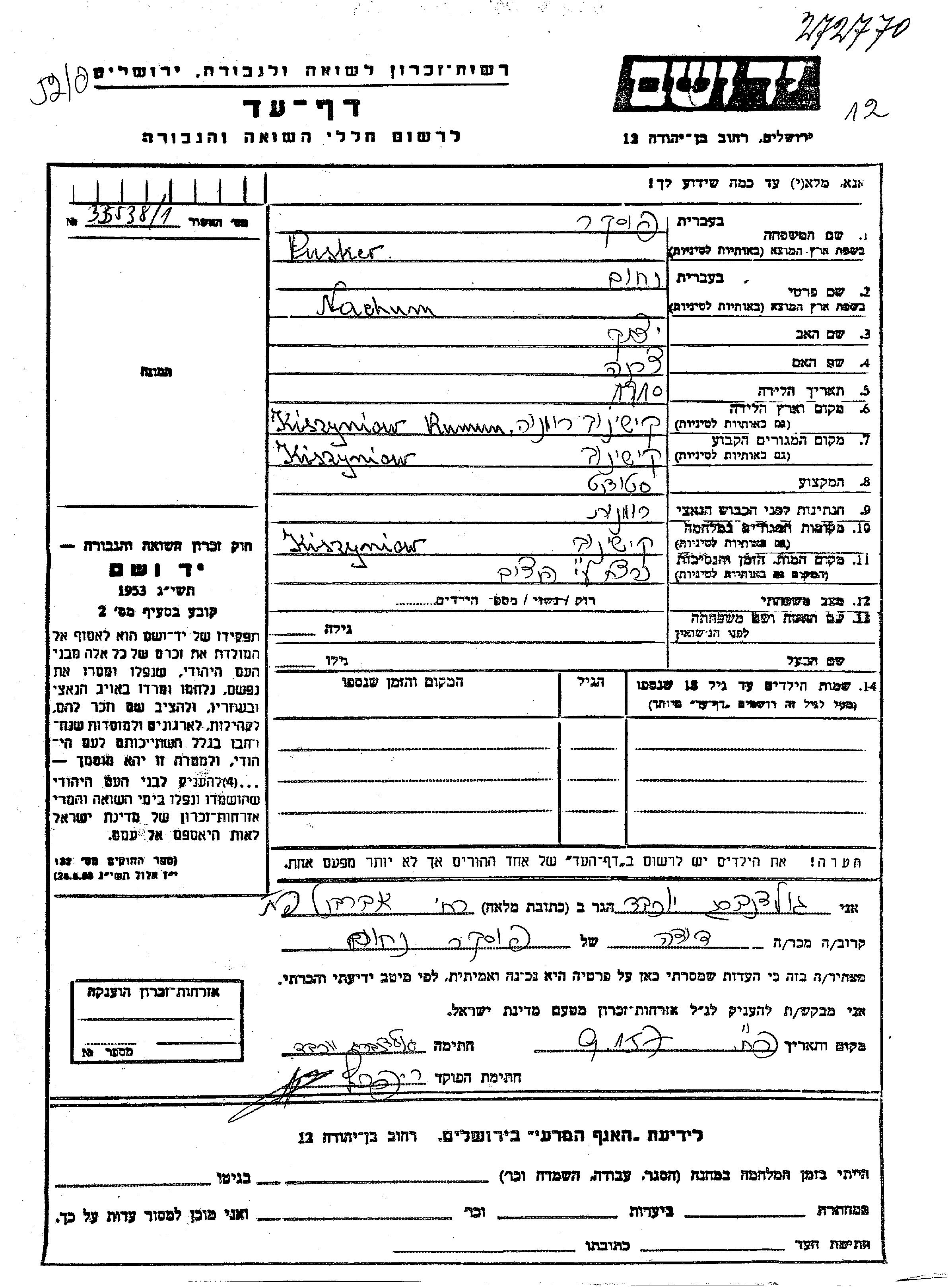 חיפוש שם מוסר דף העד. חיפוש לפי כל שם פרטי, כולל כינוי או שם חיבה