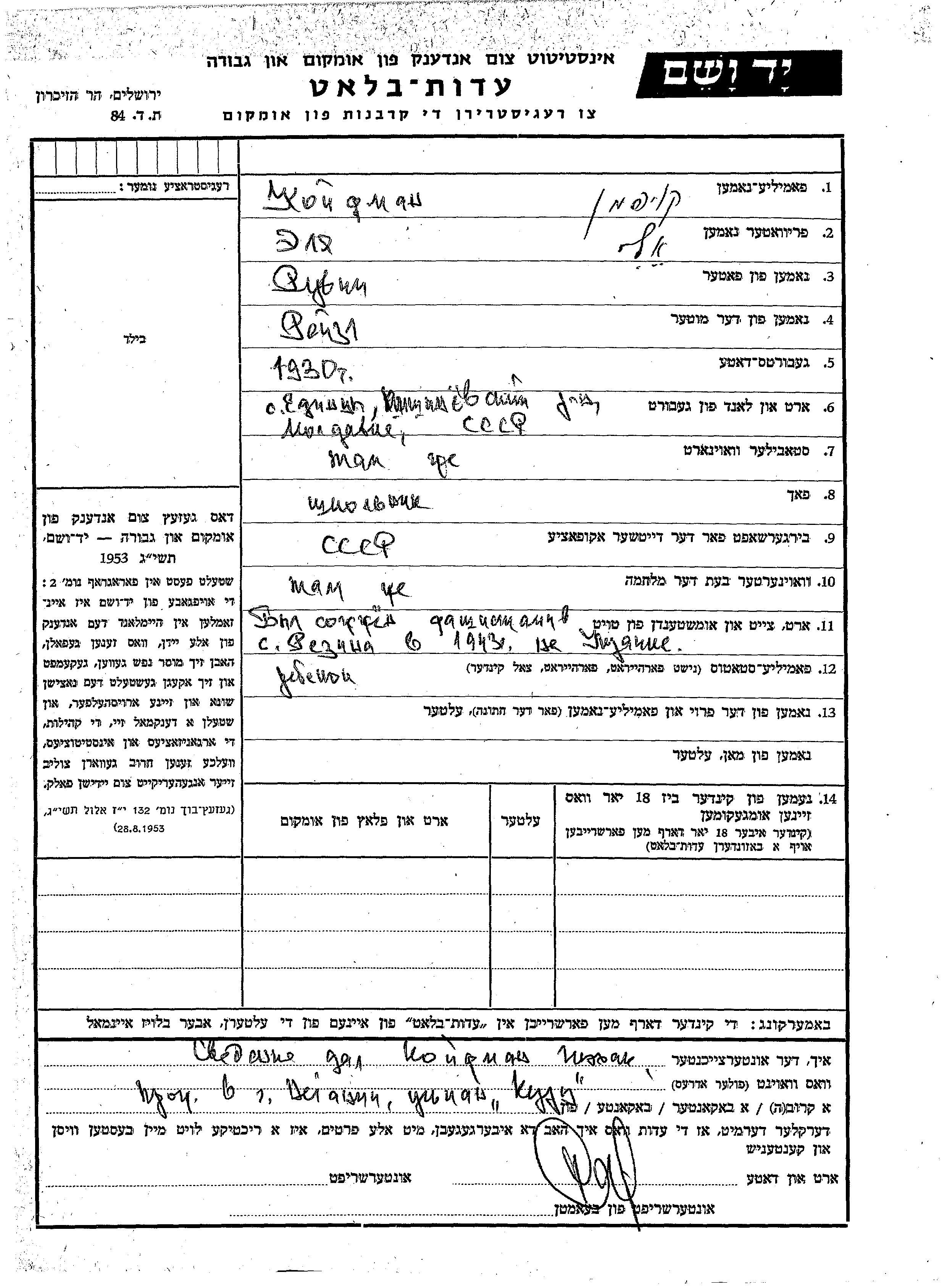 Elya קויפמן נולד בEdint שברומניה בשנת 1930 לRuvim וReizl. הוא היה תלמיד. לפני מלחמת העולם השניה התגורר בEdint שברומניה. בזמן המלחמה הוא היה בEdint שברומניה. הוא נרצח בשואה. מקום המוות: Rezina שברומניה בשנת 1943.