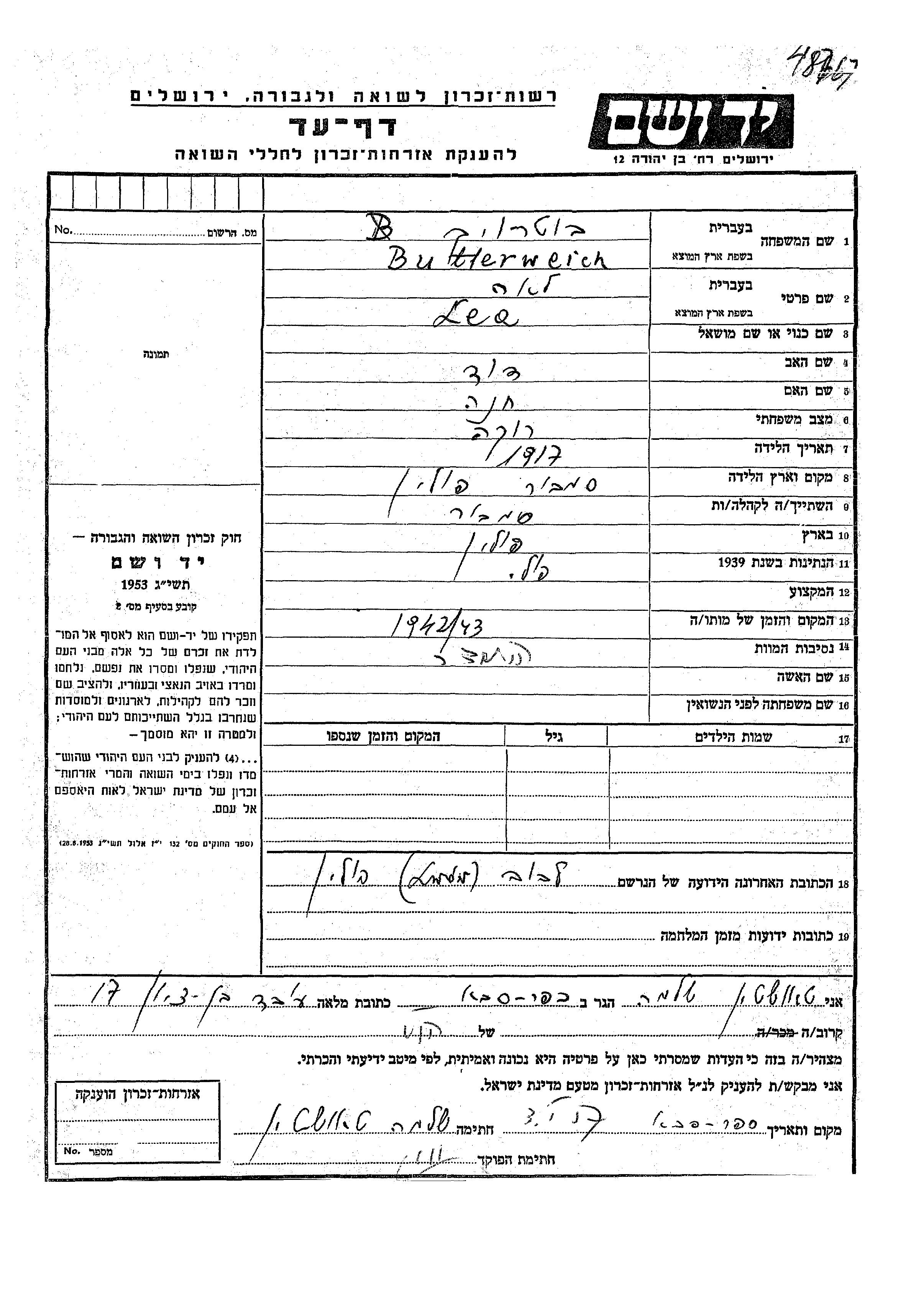 Butterweich לאה 1917 Sambor, פולין דף-עד