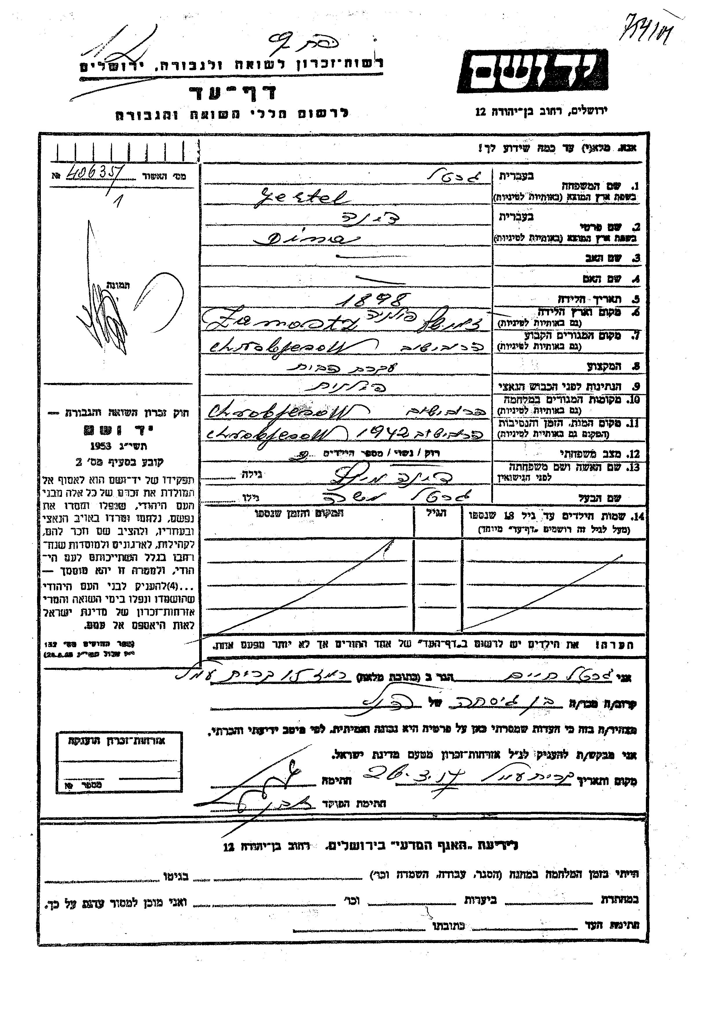 גרטל דינה 1898 Chrobjeszow, פולין דף-עד