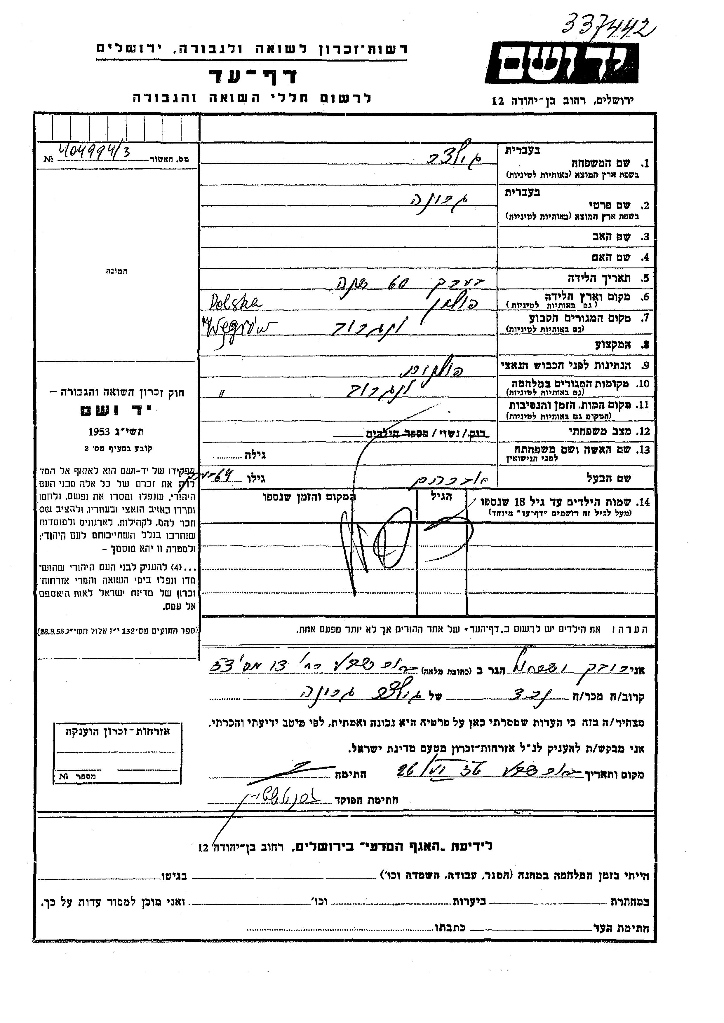 יד ושם - המפעל להנצחת השמות בדפי עד