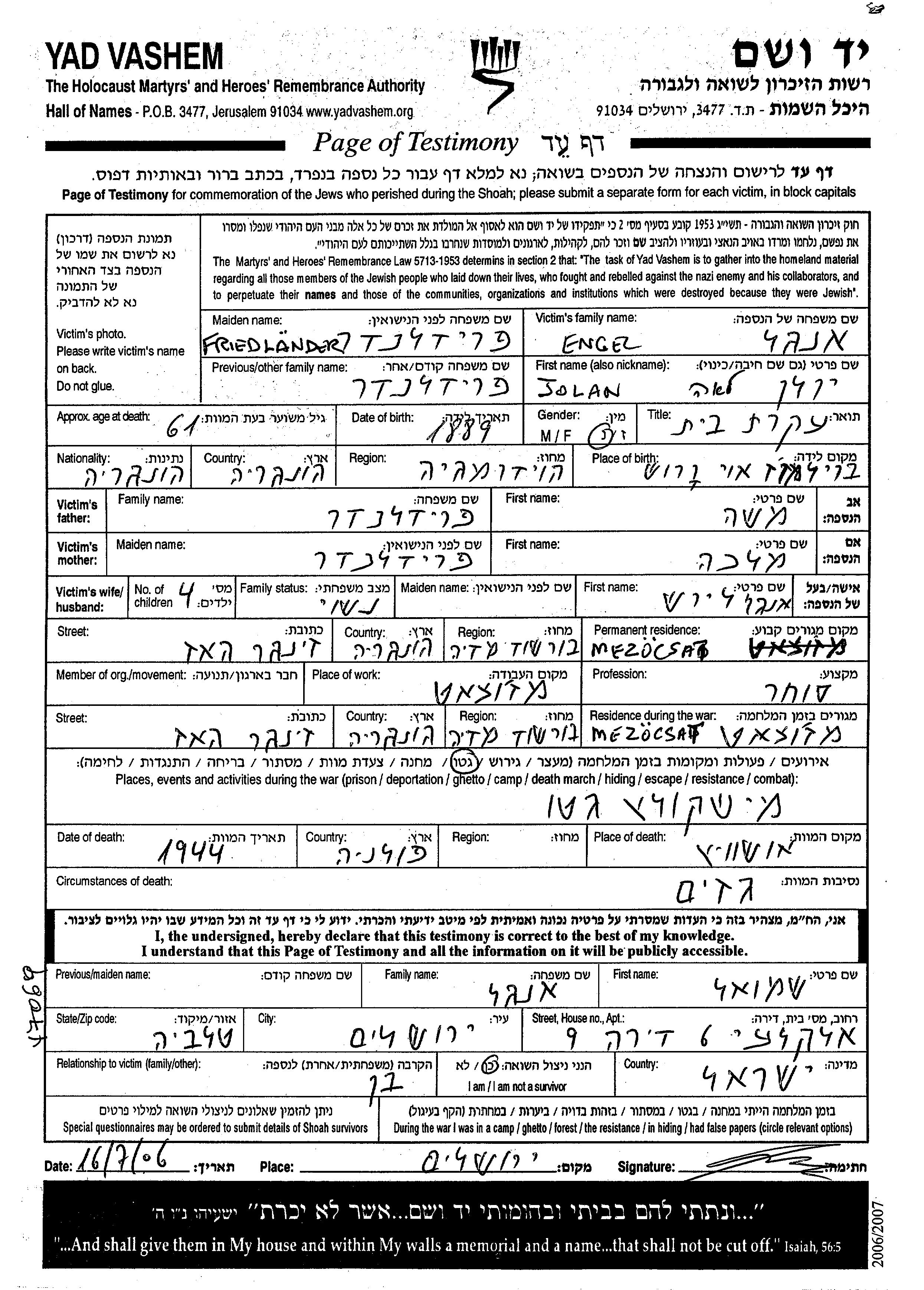 יולן נרצחה בשואה. מקום המוות: Auschwitz שבפולין בשנת 1944.