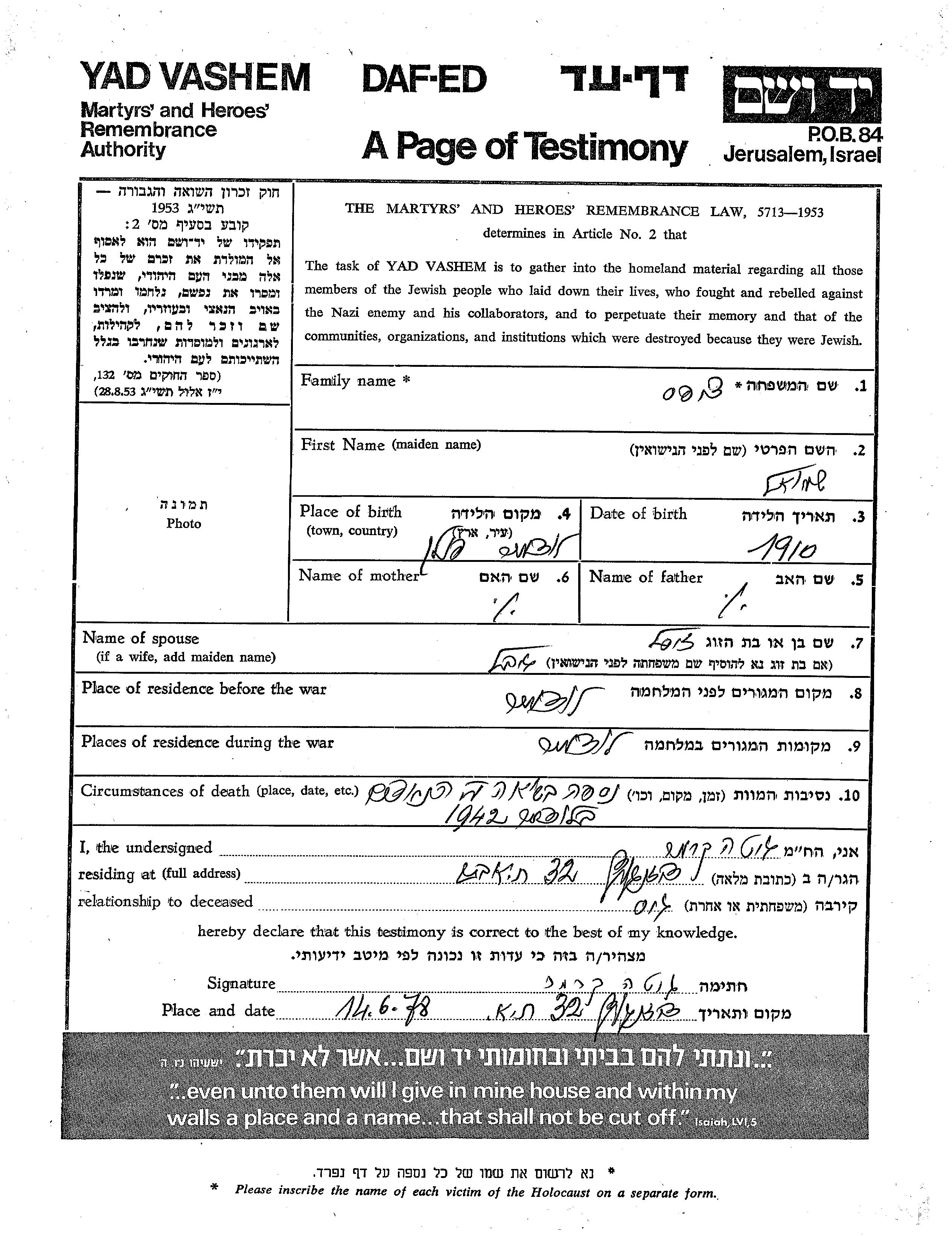 יד ושם - המפעל להנצחת השמות בדפי עד