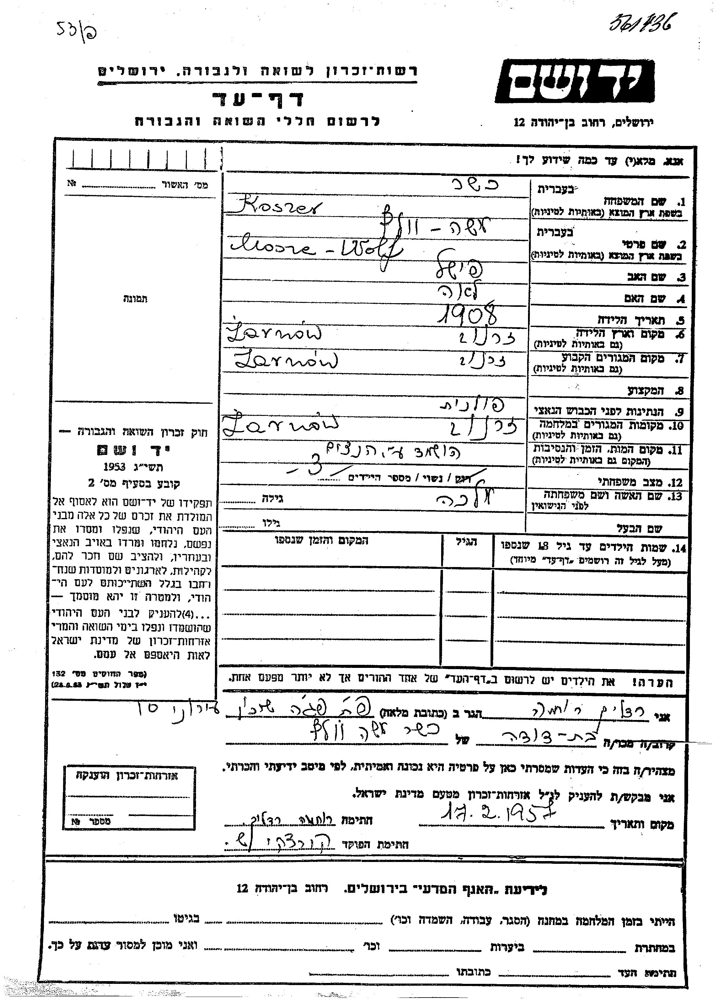Koszer Mosze Wolf 1908 Zarnow, פולין דף-עד