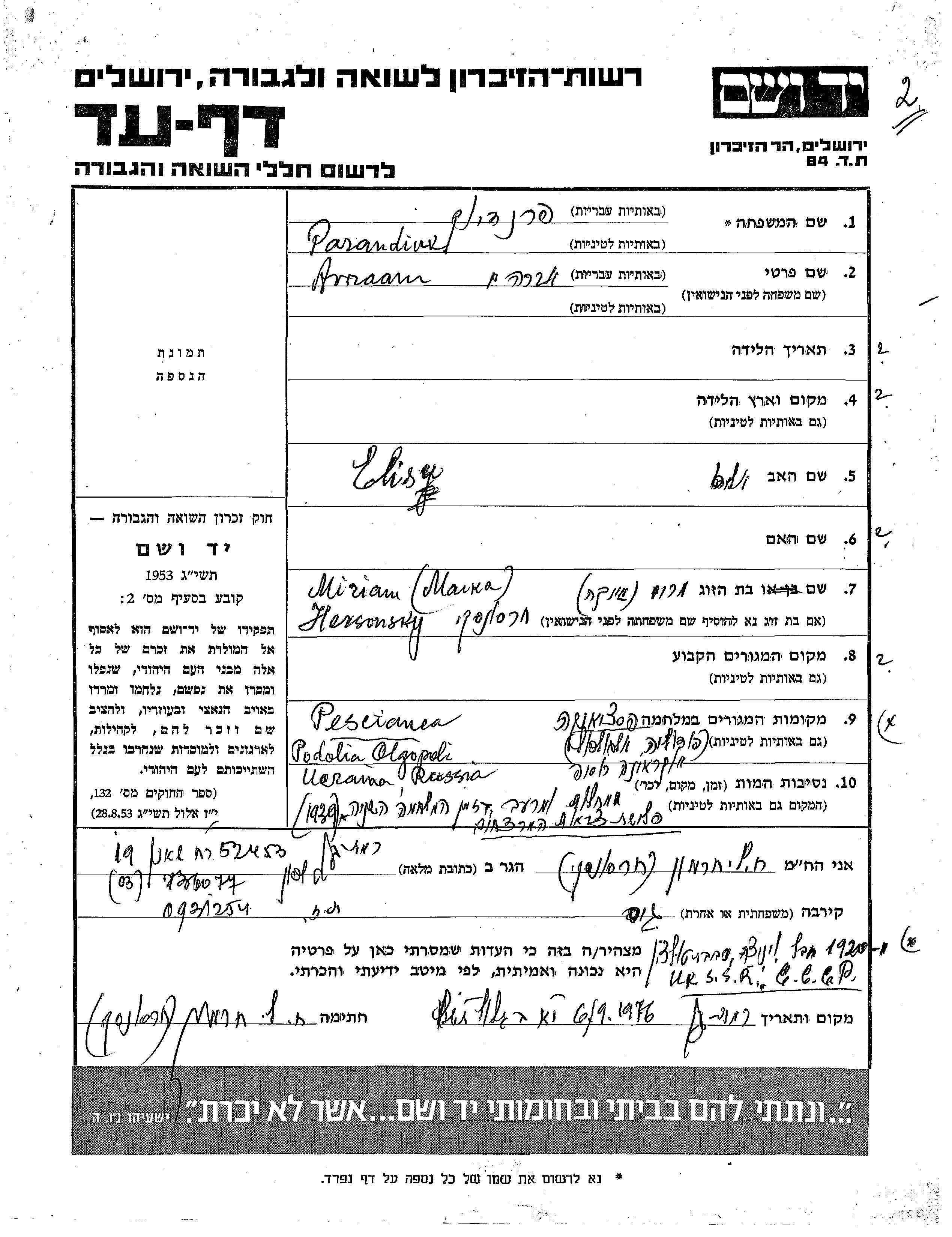 יד ושם - המפעל להנצחת השמות בדפי עד
