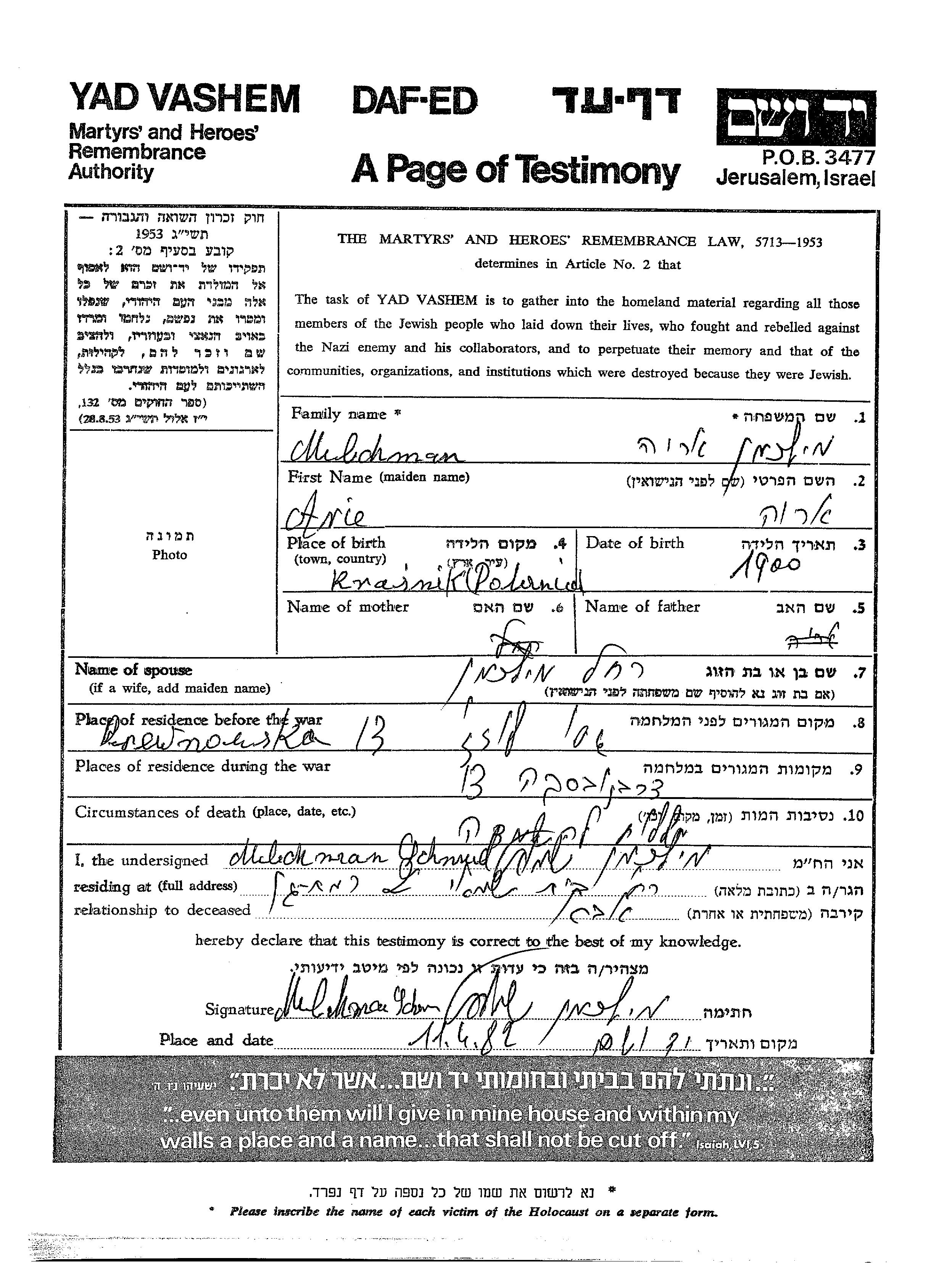 חיפוש שם מוסר דף העד. חיפוש לפי כל שם פרטי, כולל כינוי או שם חיבה