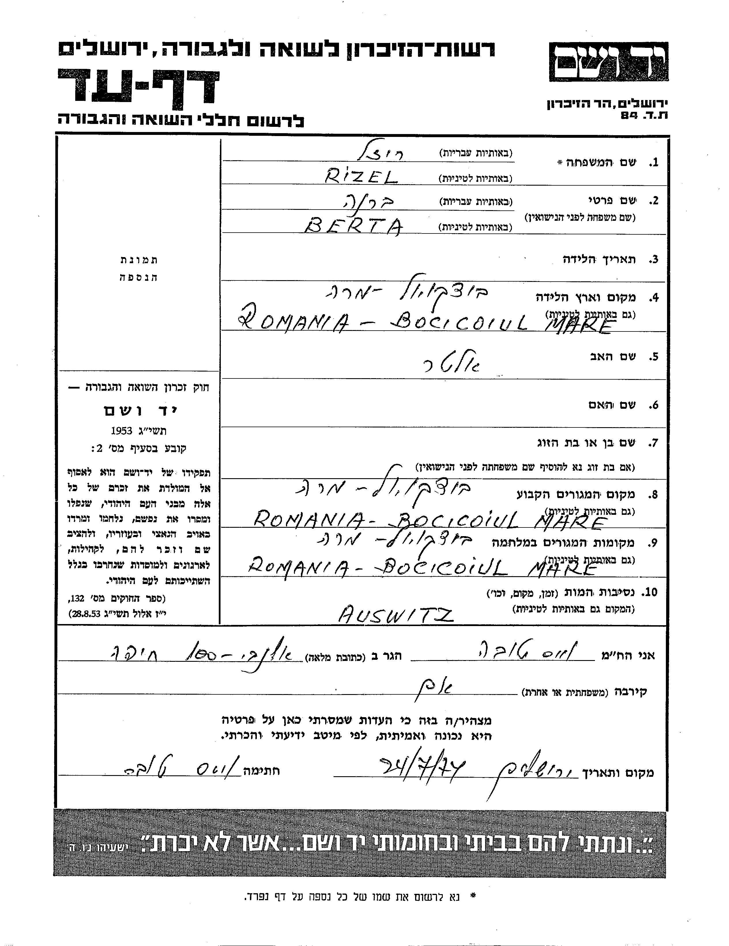 עיר/כפר, גטו/מחנה או אתר רצח או מחוז/אזור או מדינה. שם מקום ניתן לחפש רק בא-ב לטיני.
