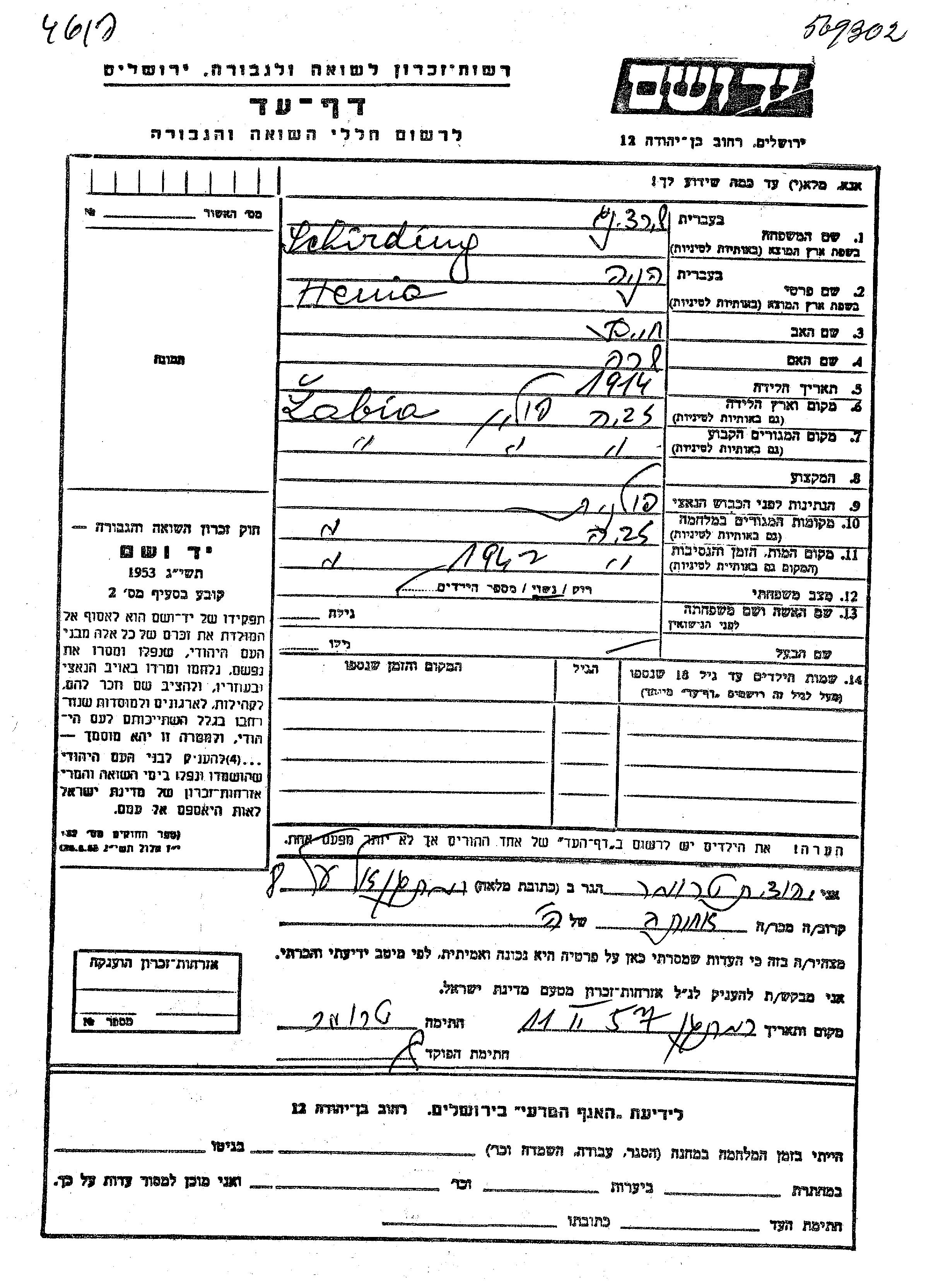 יד ושם - המפעל להנצחת השמות בדפי עד