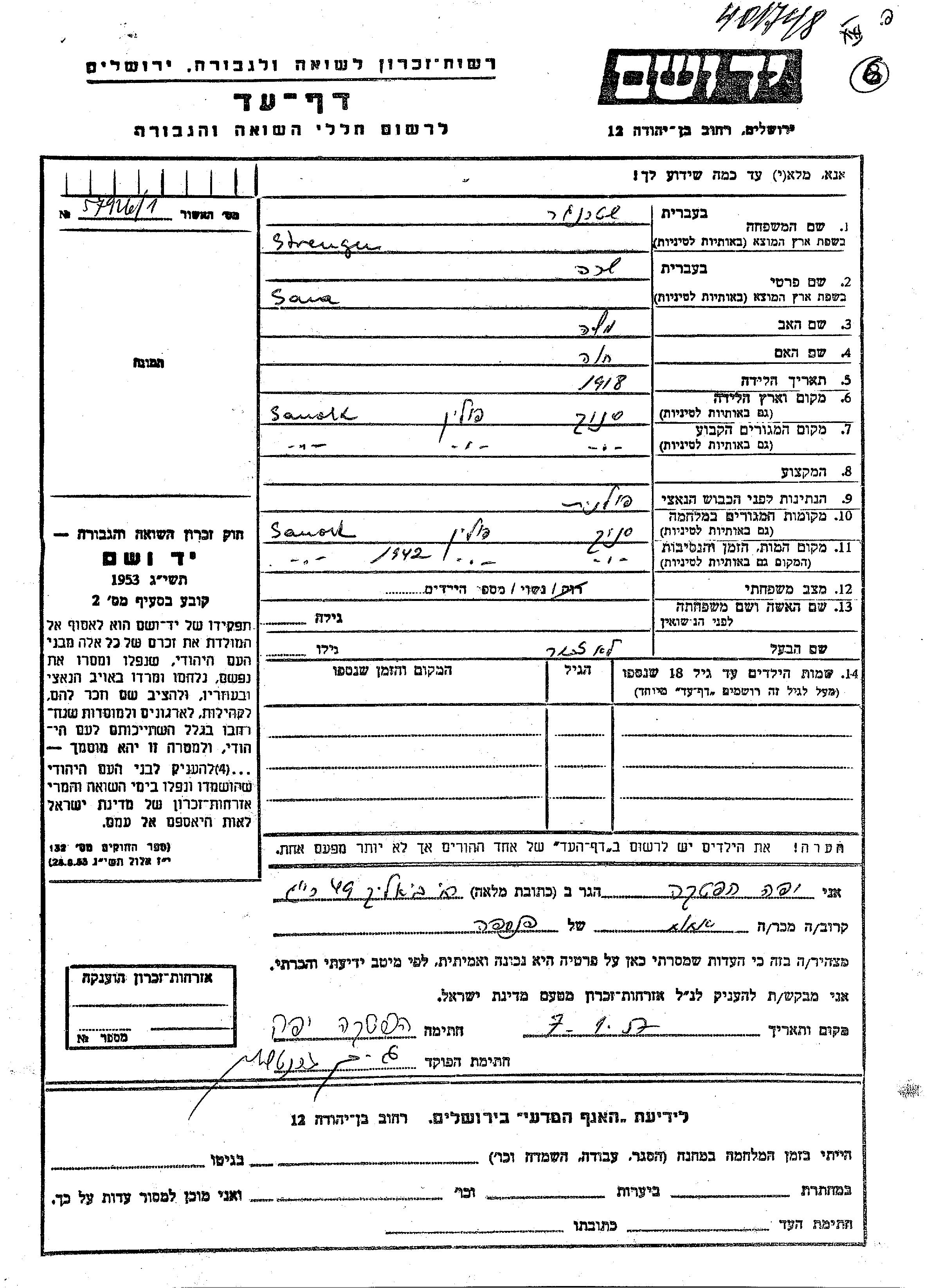 Strenger שרה 1918 Sanok, פולין דף-עד