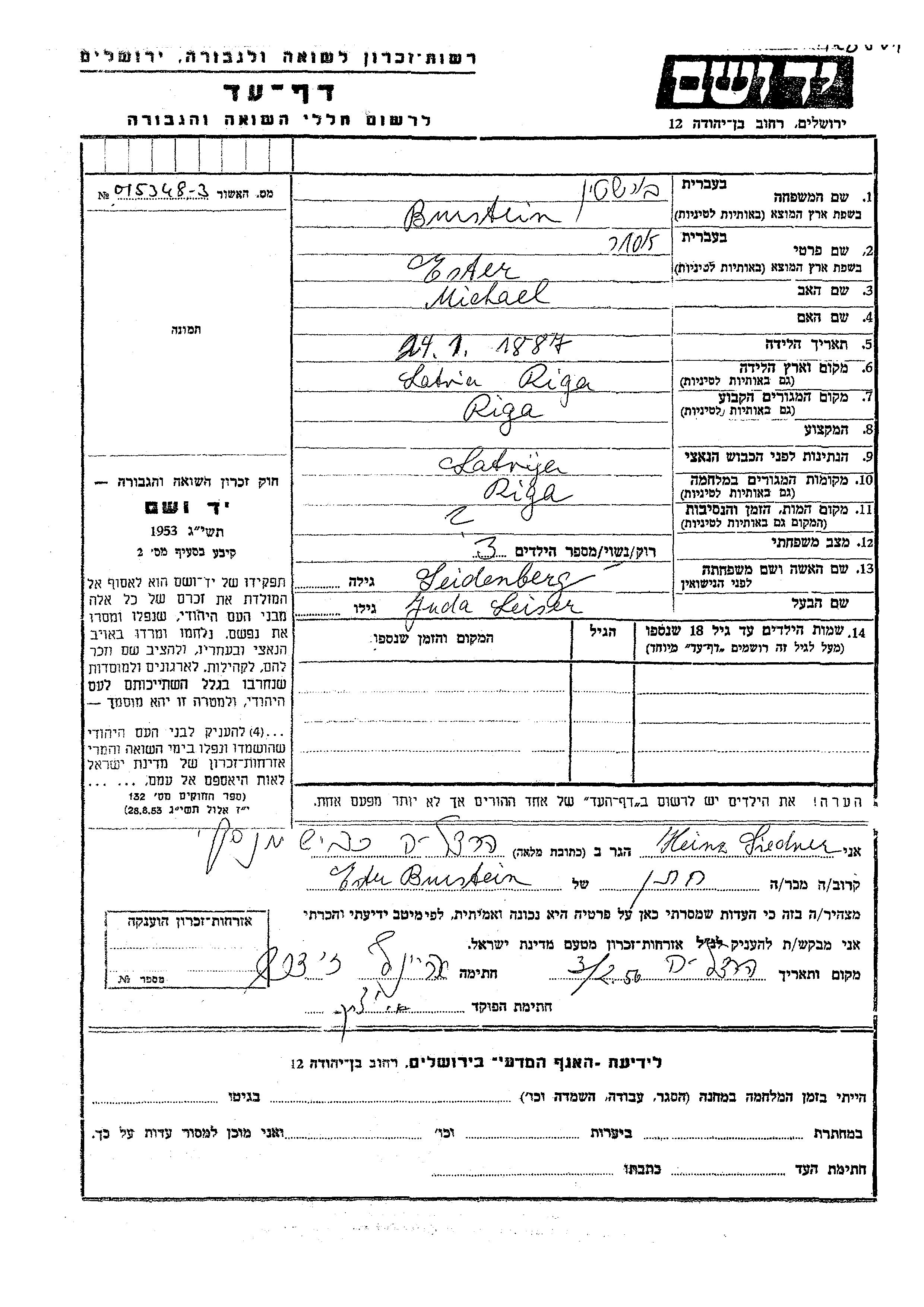 אסתר Burstein לבית Seidenberg נולדה בRiga שבלטביה בשנת 1887 למיכאל. היא היתה נשואה לYnda Leiser. לפני מלחמת העולם השניה התגוררה בRiga שבלטביה. בזמן המלחמה היא היתה בRiga שבלטביה. אסתר נרצחה בשואה.