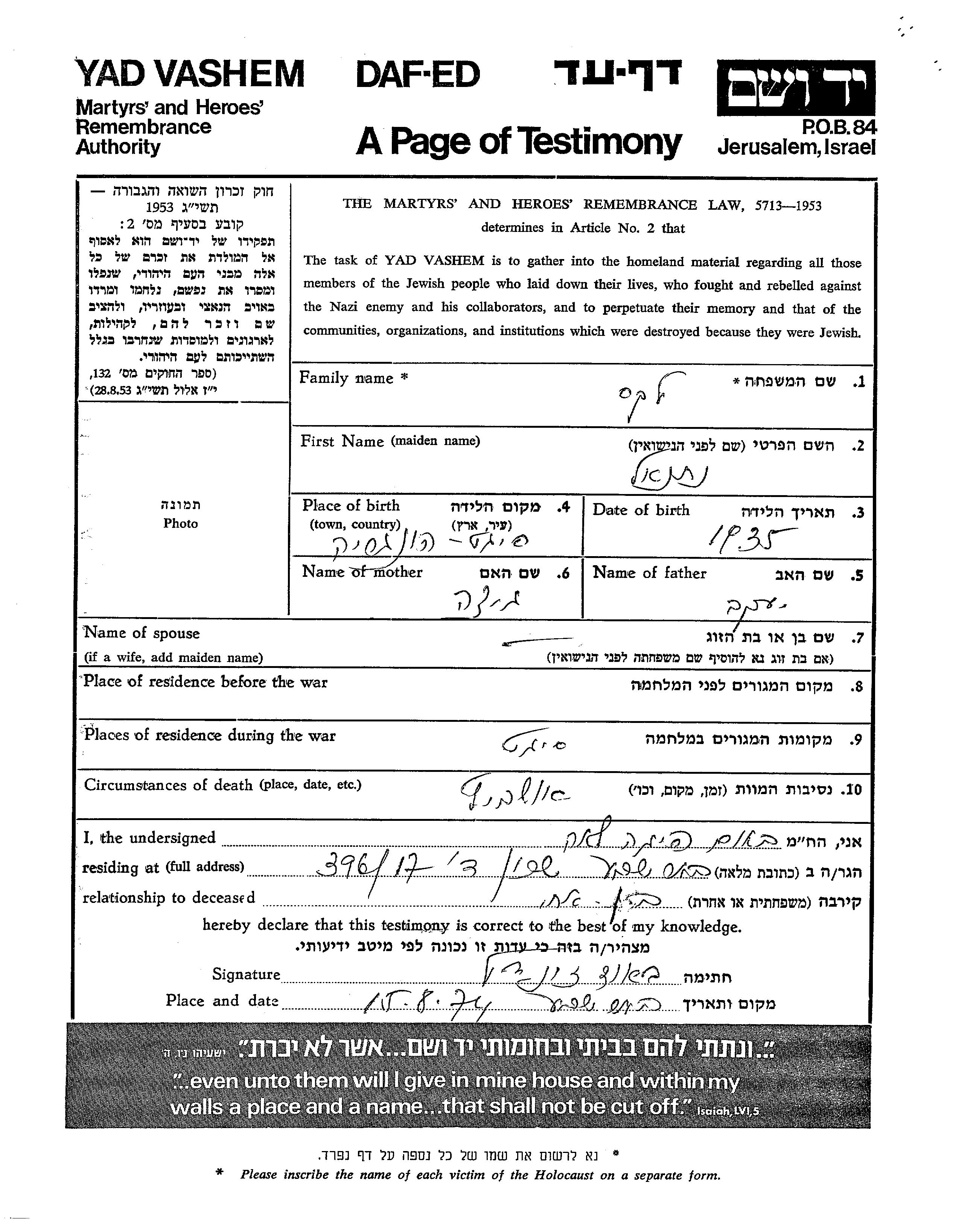 יד ושם - המפעל להנצחת השמות בדפי עד