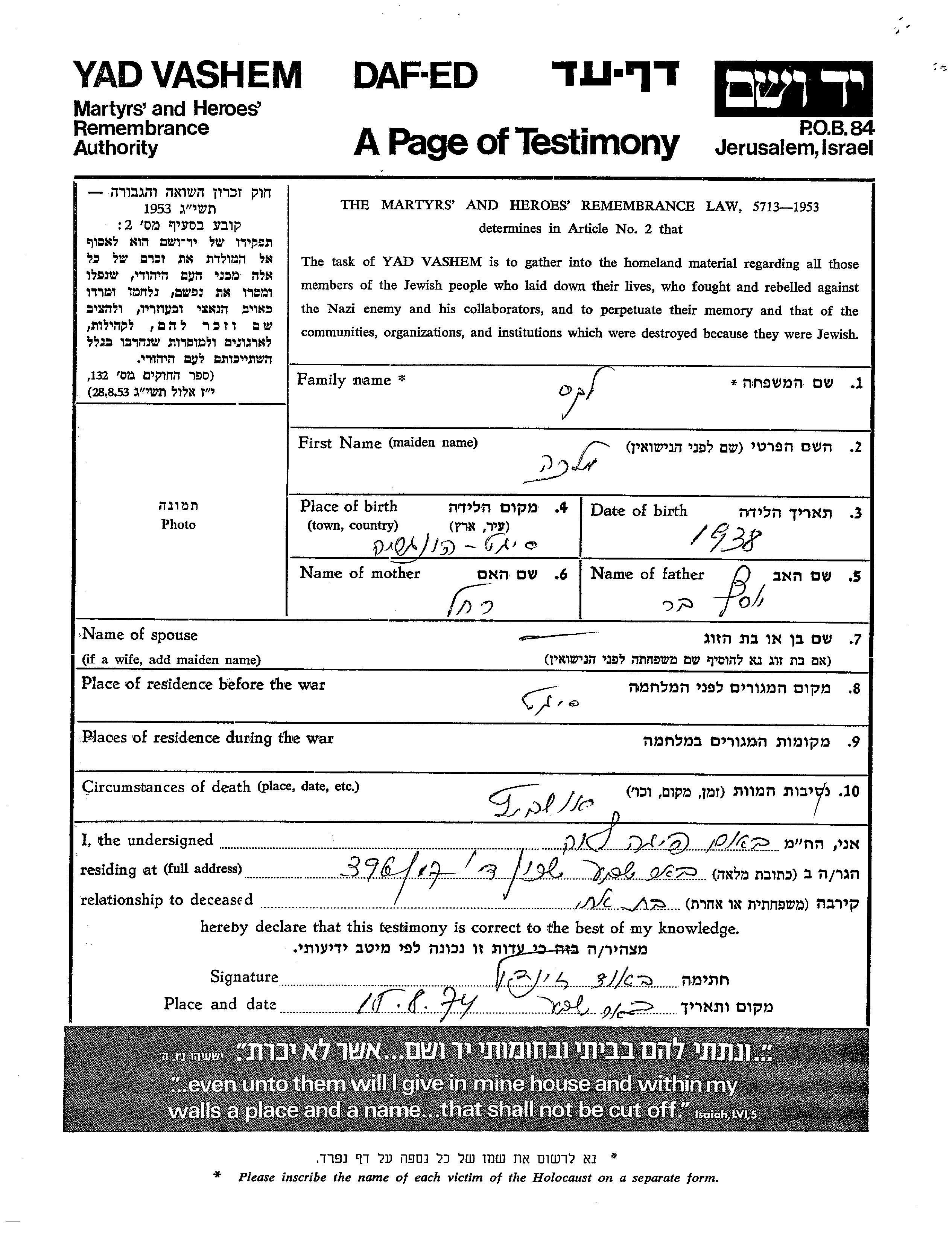 יד ושם - המפעל להנצחת השמות בדפי עד