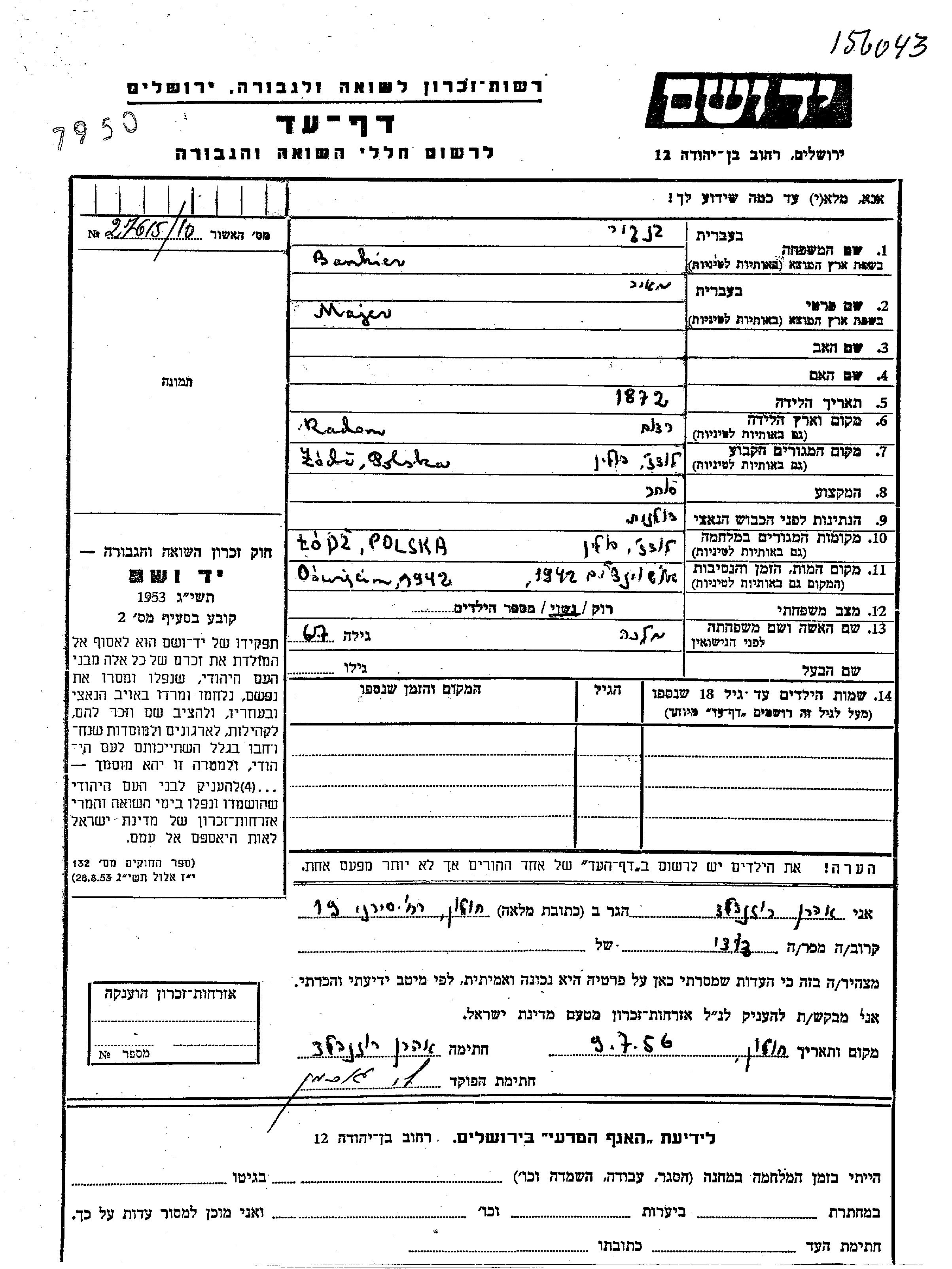 יד ושם - המפעל להנצחת השמות בדפי עד